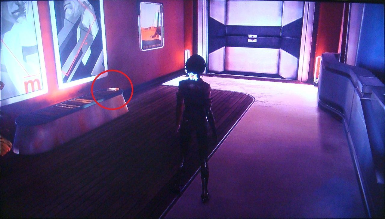 (Episodio 5) En la esquina entre los dos pasillos que atraviesas del despacho-club de luz violeta, al que entras por una ventana.