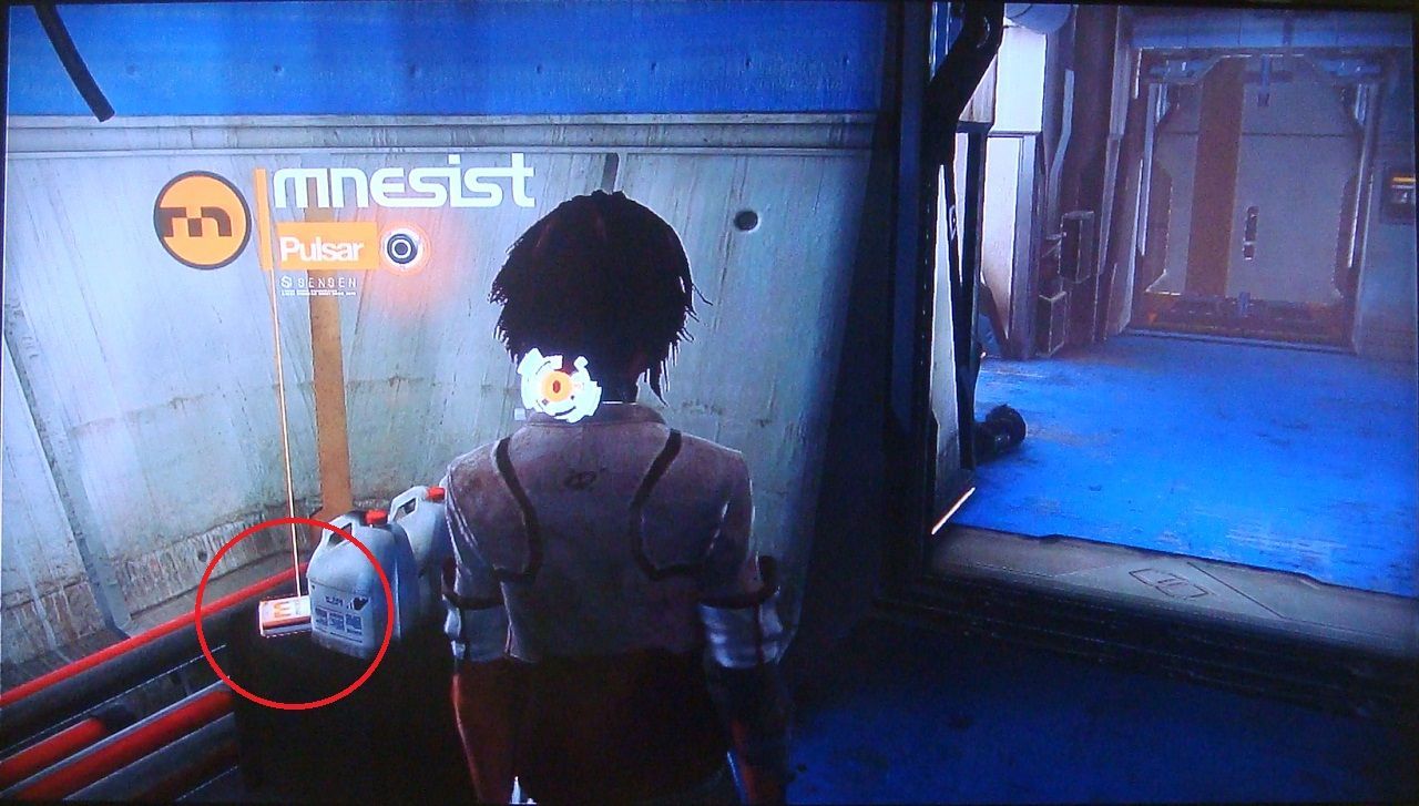 Ahora no sigas por el camino que te indica el Sensen. En su lugar, trepa por los salientes grises que hay junto al número 08 dibujado en la pared. Desplázate hacia la derecha y luego sube, pasando por encima del foco de luz naranja. Sigue el pasillo hasta el fondo y podrás recoger un recuerdo de Mnesist.