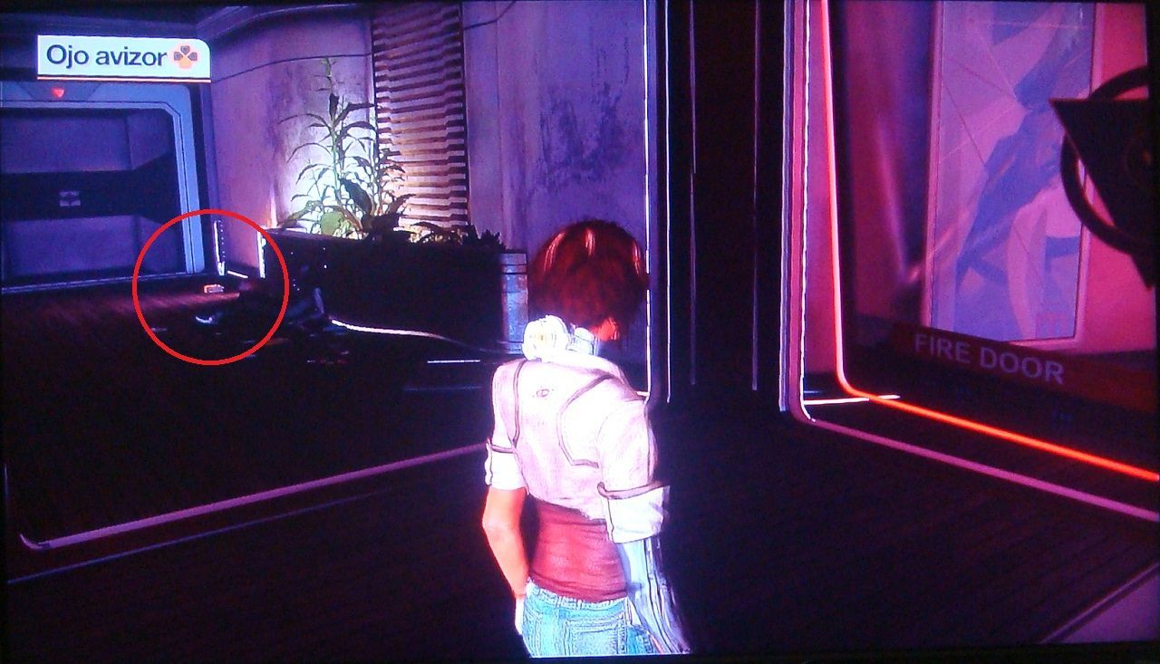 Regresa a la sala anterior, recupera el paquete de energía que acabas de usar y ponlo en la escalera de emergencia. Sube por ella, salta al balcón de la izquierda y entra por la puerta que lleva al puesto de seguridad. Recoge el recuerdo de Mnesist que hay sobre el escritorio.