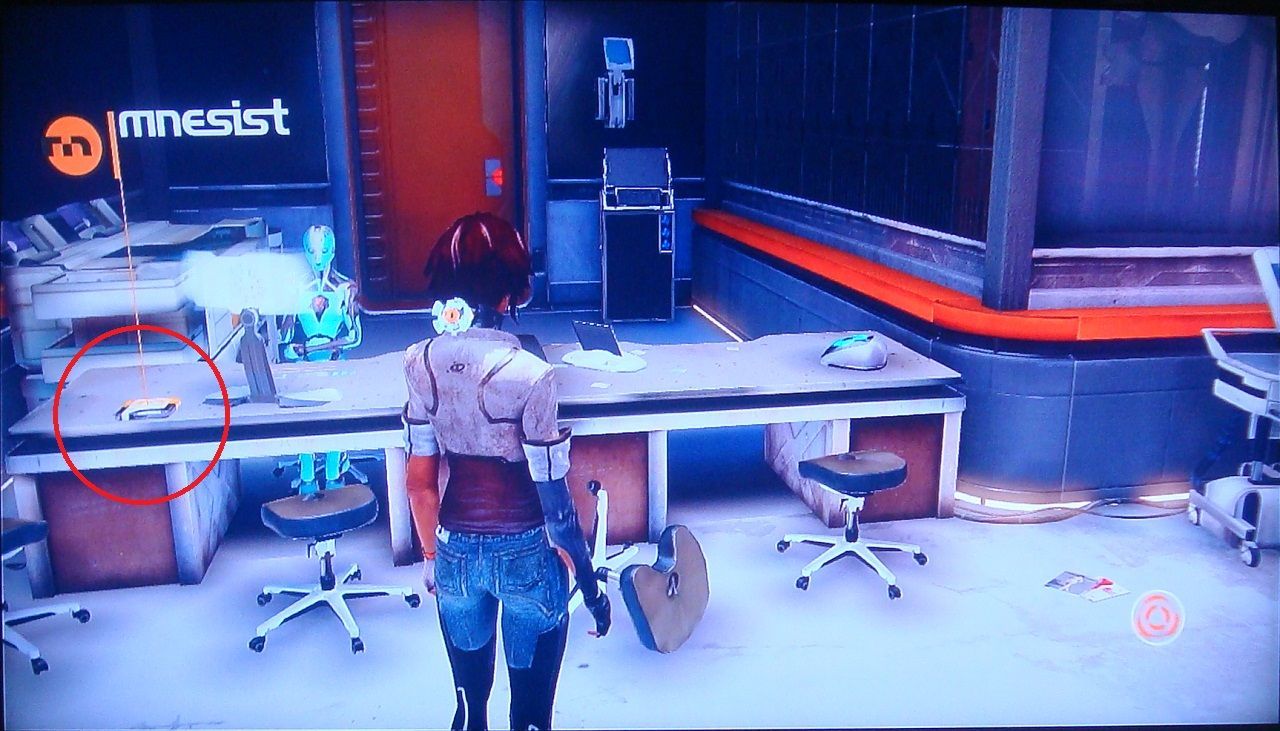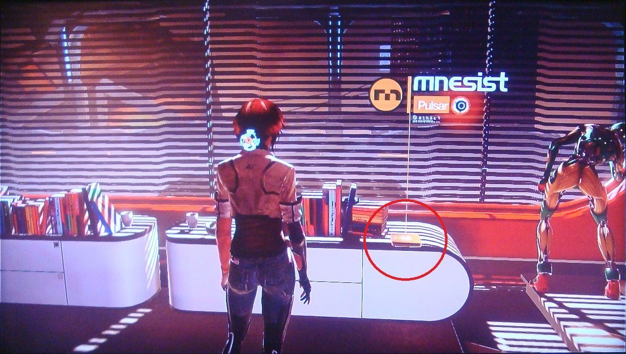 Sal por la otra puerta y volverás a la sala cuadrada de los robots. Ahora ve por la primera puerta de la izquierda. No actives la remembrana aún, antes recoge el último recuerdo de Mnesist, encima de una mesa junto a la escalera de la izquierda.