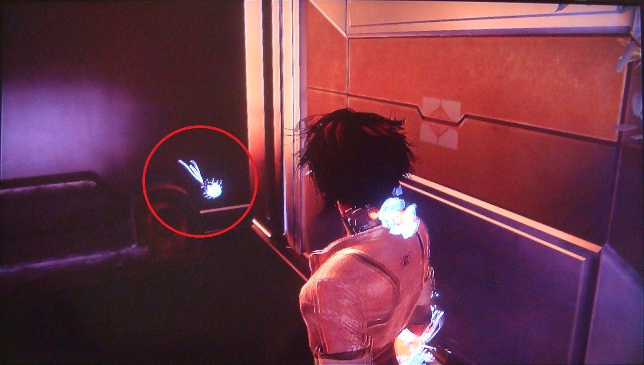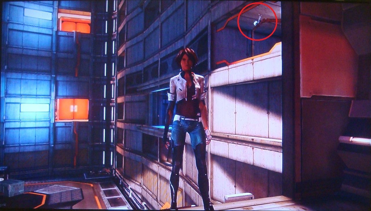 43. Tras derrotar al Zorn y subir por la escalera de emergencia, busca el scaramech en la pared del lado derecho antes de entrar por la puerta.