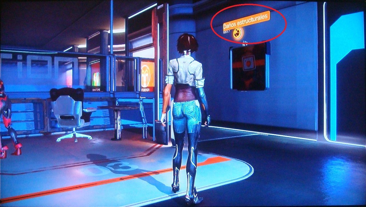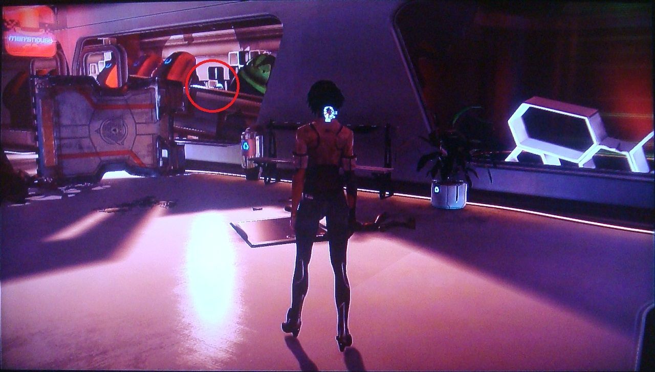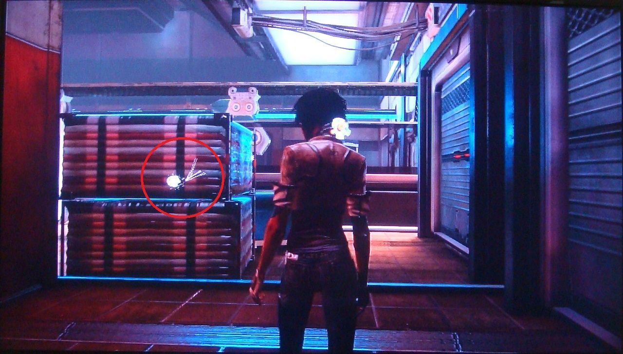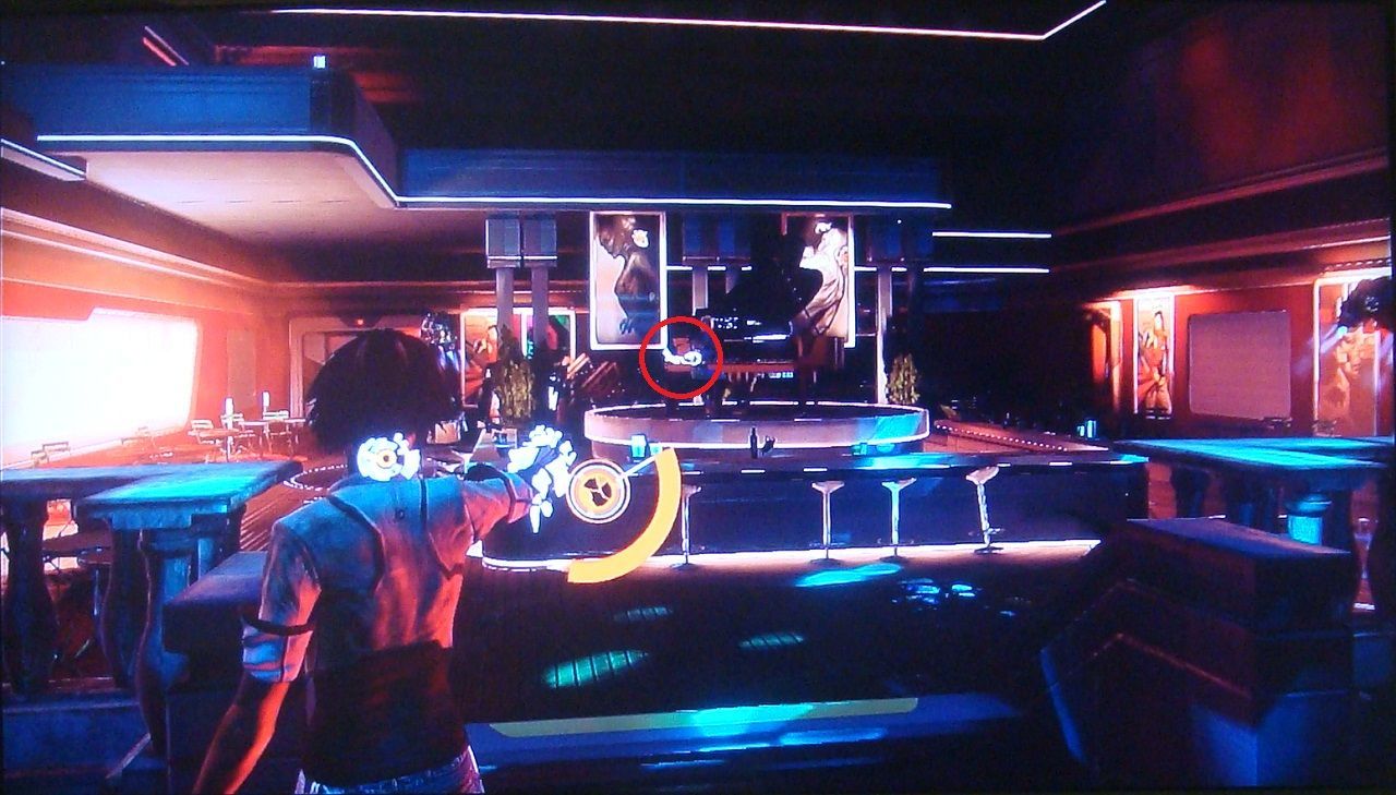 48. Cuando llegas al bar del que huye Trace, ve hacia la fiesta privada de la izquierda y súbete a la zona elevada. Desde aquí puedes disparar al scaramech que hay sobre el piano del centro.