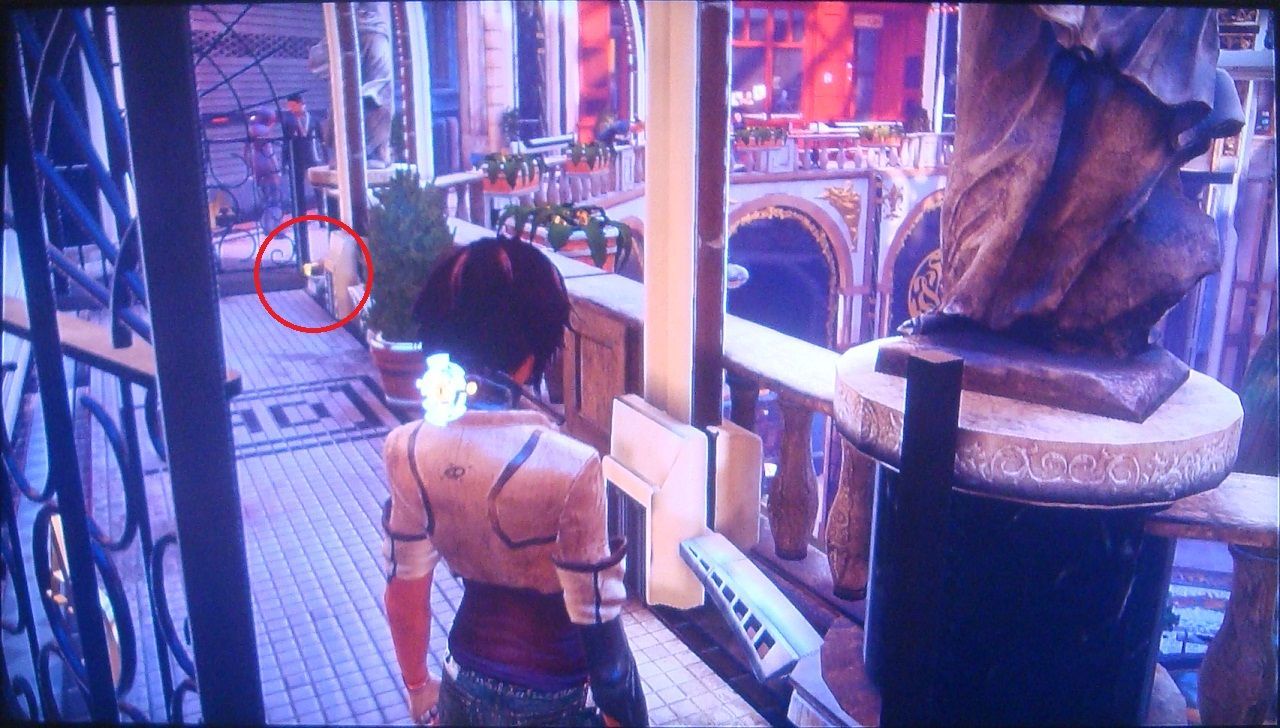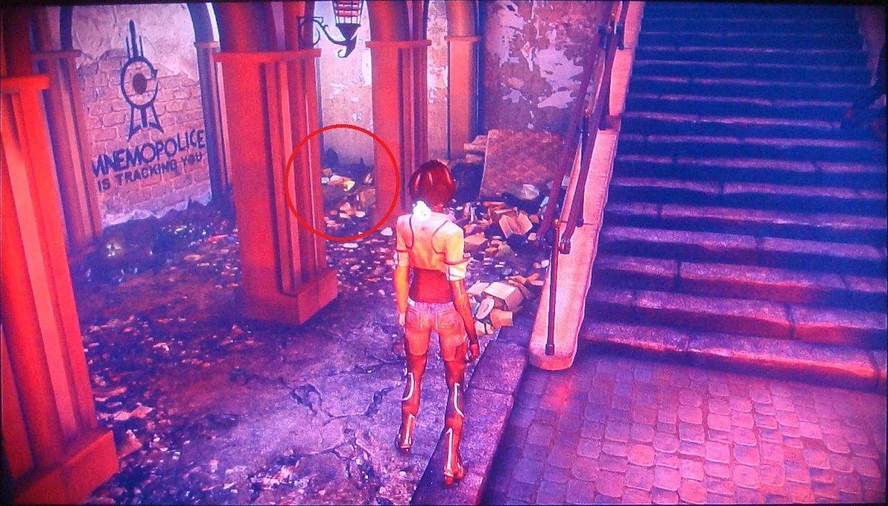 16. En el exterior, cuando Nilin observa las calles inundadas tras una conversación con Edge, descuélgate de la plataforma y sigue la tubería roja por la izquierda para poder subirte a un balcón superior.