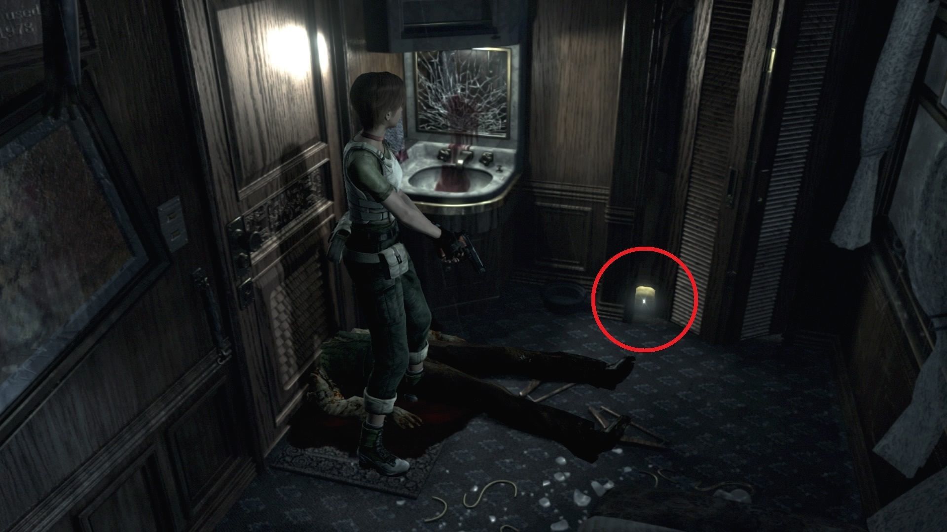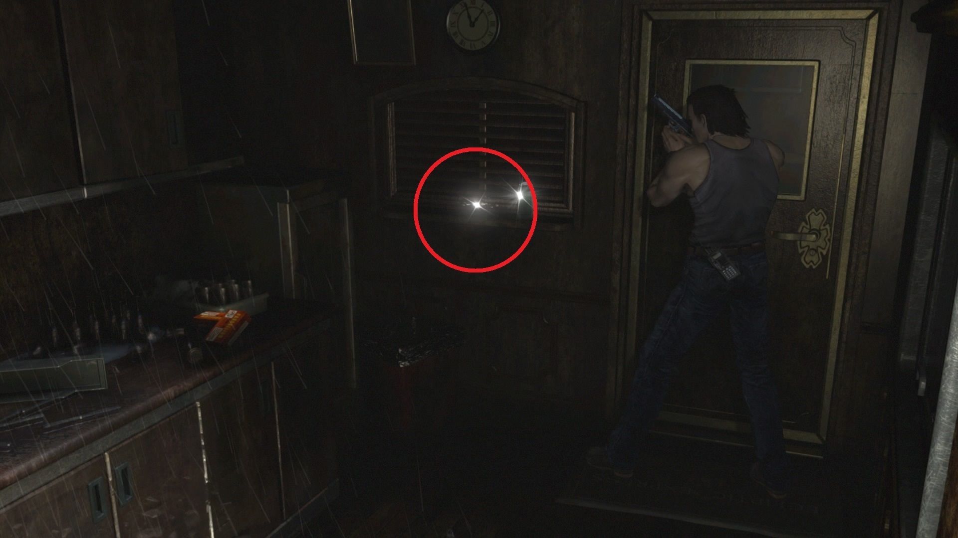 Cambiemos a Billy. Recoge el picahielos del ascensor y úsalo frente a la puerta de la cocina para salir de aquí. Elimina al par de zombies, baja las escaleras y reúnete con Rebecca en la cocina de abajo. Usa el accionador del panel en la trampilla de la esquina y entra a rastras por ella.