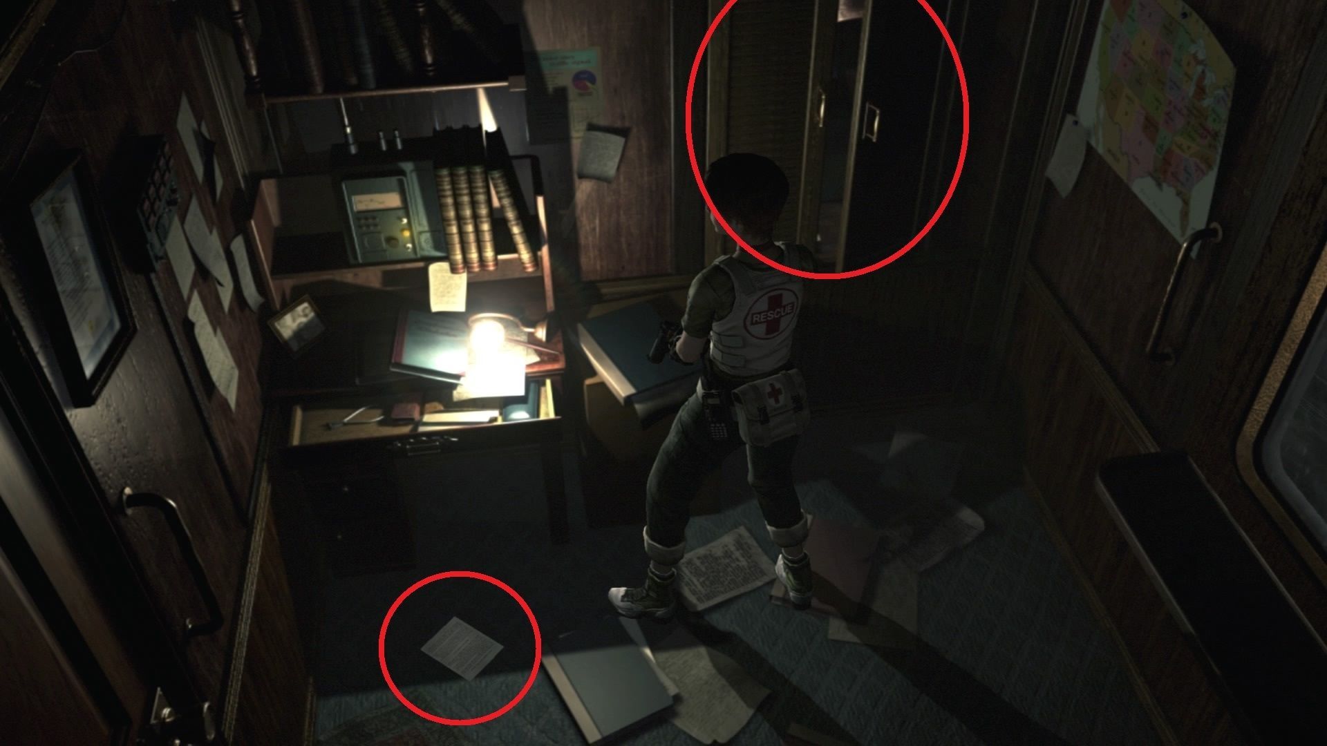 Antes de subir por la escalera, ve hacia la derecha y recoge la nota del revisor del suelo. Examina también el armariete de atrás para hacerte con un maletín.