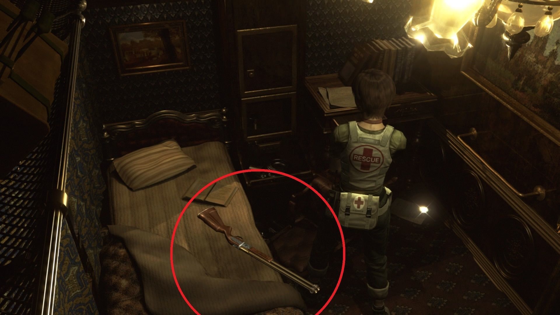 Ve por el pasillo y entra por la puerta de la derecha, la 101. Dentro, dirígete hacia la pantalla para encontrar el "rifle" (es una escopeta). Equípatelo.