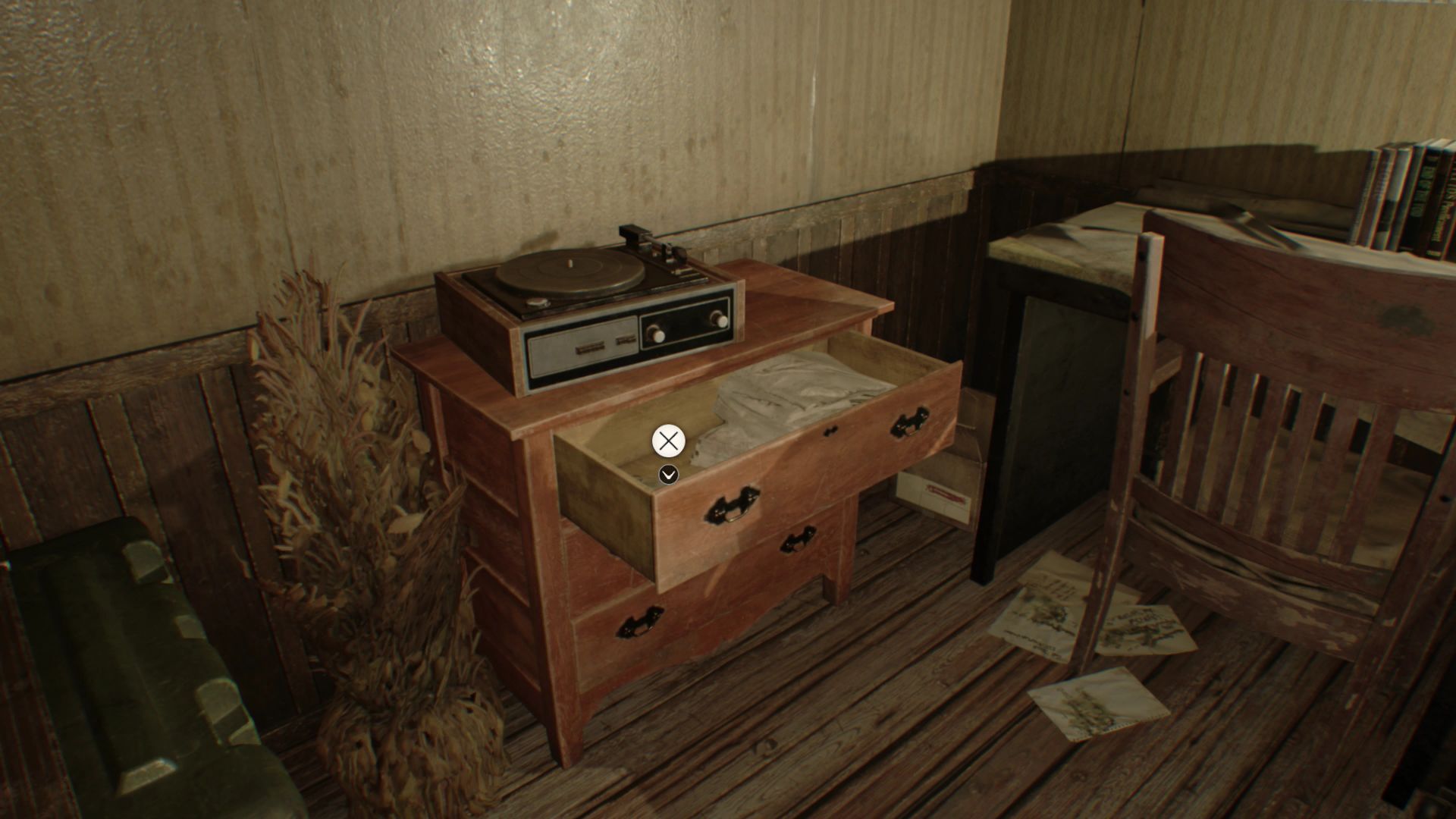 Esta zona comenzará con una escena en la que vemos a Jack, Marguerite, Lucas y la abuela Baker cenando. Durante la escena no podrás hacer nada, espera a que todos menos la abuela se vayan de la sala y mueve el joystick izquierdo para tambalear la silla en la que estás atado para liberarte.