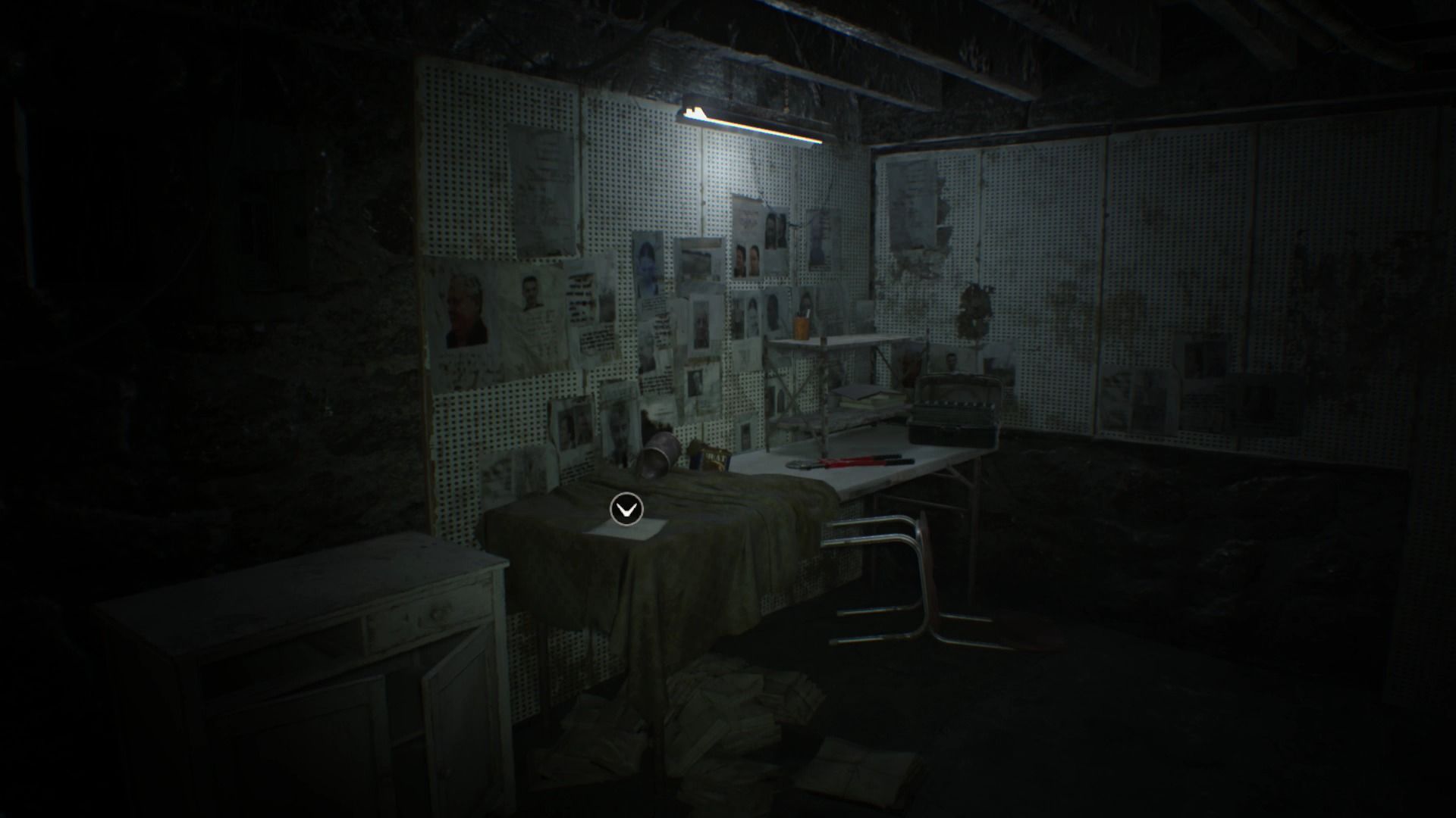 Avanza por los túneles hasta llegar a una zona en la que verás una celda. Acércate a la celda para comprobar que hay una mujer en su interior y que no puedes abrir la puerta porque hay una cadena. Ve hacia la izquierda y encima de una mesa encontrarás una Lista de nombres que tendrás que leer por ambos lados para conseguir los Documentos 2 y 3, justo a la derecha verás un Cortacadenas que tendrás que recoger para romper la cadena que te impide entrar en la celda. Una vez dentro acércate a la mujer que está tumbada en la cama para descubrir que es tu esposa Mia.