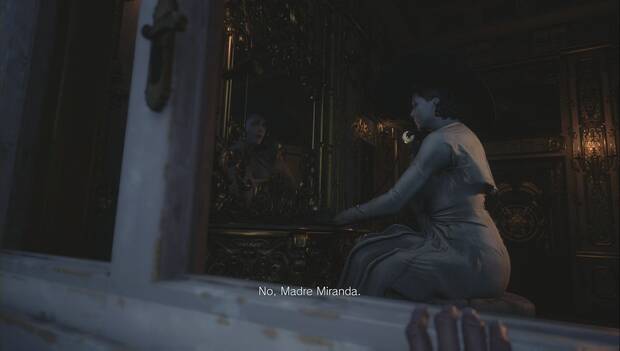Cuando tengas la llave, recoge los objetos de la habitación, vuelve a la segunda planta y abre la otra puerta. Ojo porque Dimitrescu vuelve, tendrás que torearla para volver arriba y abrir la puerta. Nada más entrar te atacará otra de las hermanas. No intentes romper la claraboya del techo, en lugar de eso rodea la sala y busca la palanca tras una columna que la abrirá.