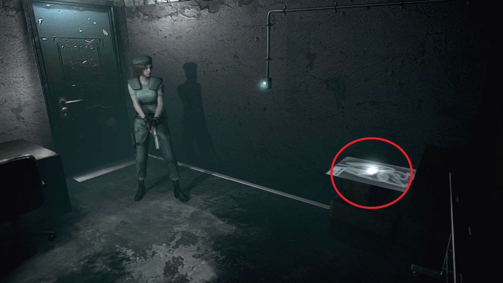 Sigue por la puerta al pie de las escaleras y entra por la que tienes justo al lado. Quédate el botiquín y cruza la puerta de la derecha. Sobre el escritorio tienes una carta del científico que puedes leer. Coge las dos radiografías...