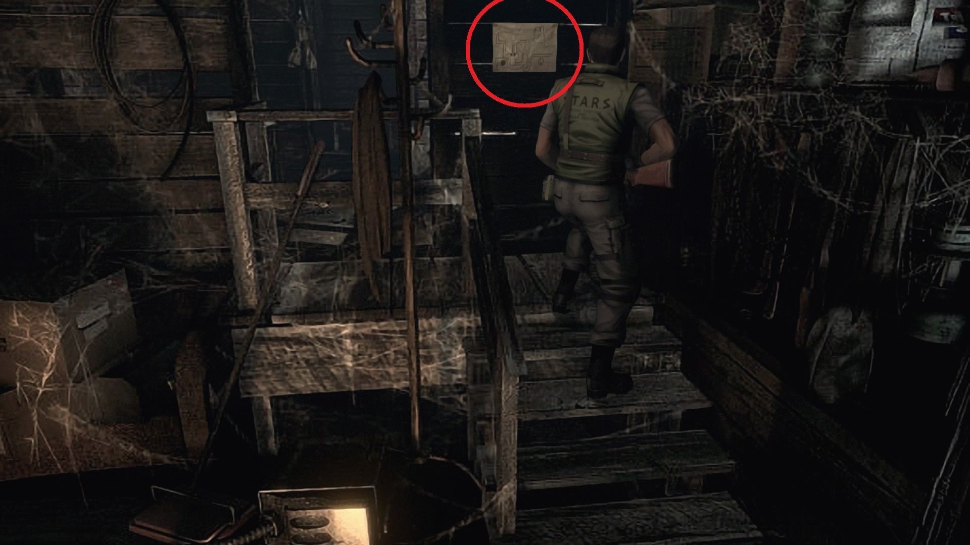 Vuelve al camino principal y sigue avanzando a través del bosque hasta llegar a una cabaña. Entra, sube los escalones de madera y hazte con el mapa de Patio.
