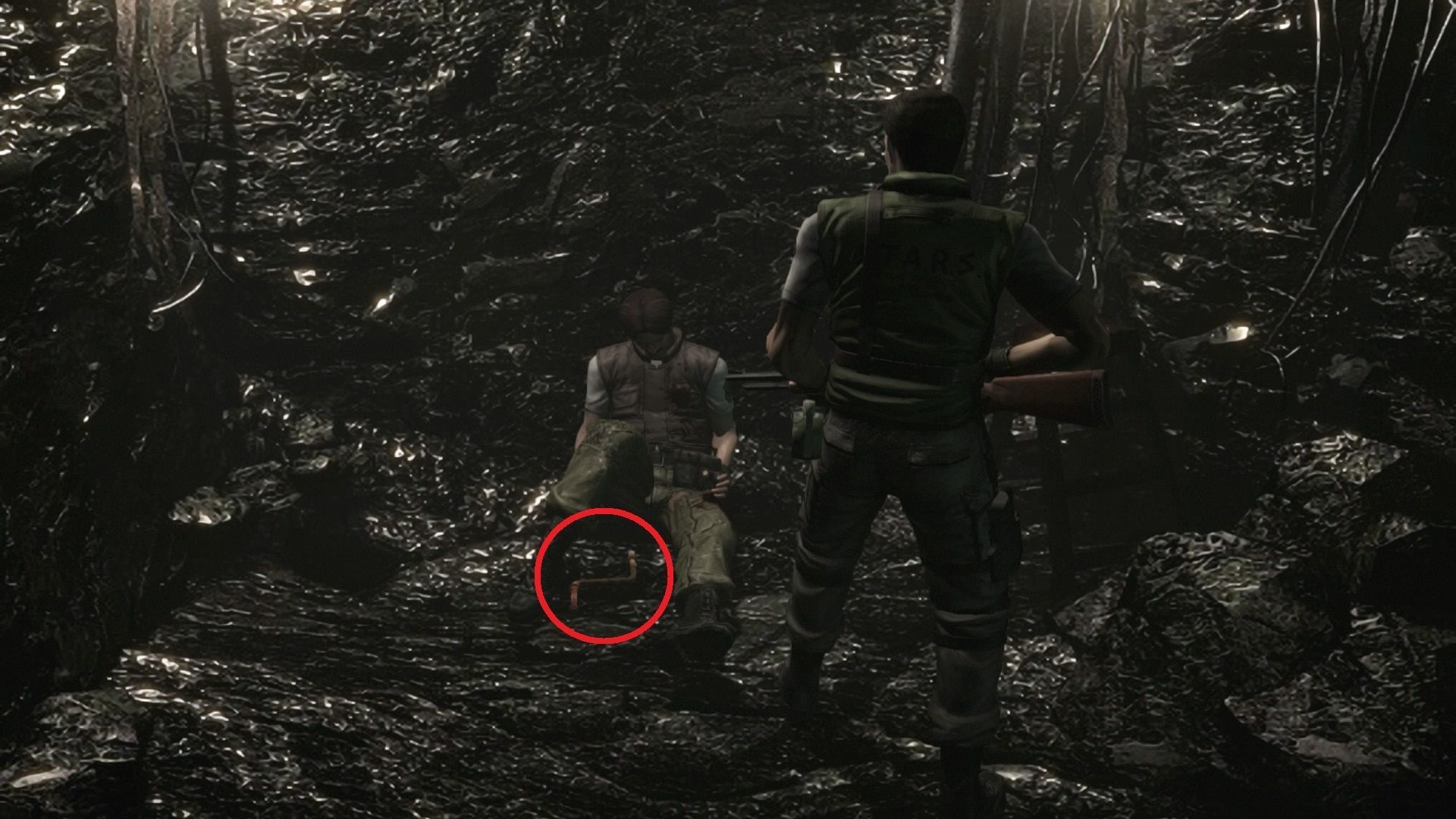 Entra por la puerta que ves aquí mismo. Coge la munición de escopeta en la dirección sin salida y sigue por el camino contrario cruzando la puerta. En esta estancia tienes dos lotes de munición de pistola y una hierba verde. Busca una puerta y ábrela. Tras la cinemática, coge la manivela.