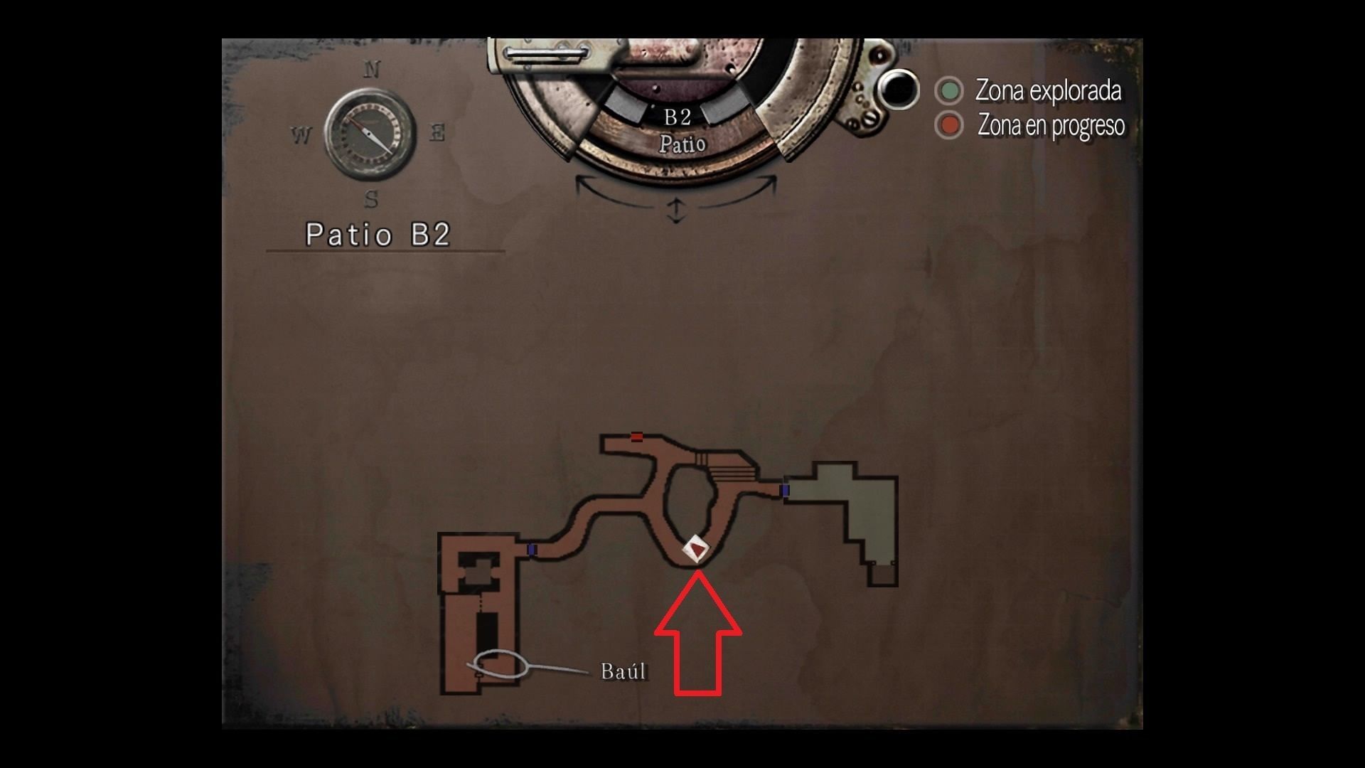 Ve en dirección a la pantalla. Hallarás un buen montón de hierbas y el mapa de Patio B1.