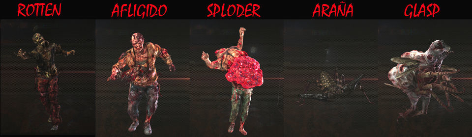 Rotten: Seres putrefactos, a diferencia de los Afligidos son lentos pero con un ataque físico mayor, la esquiva va muy bien contra ellos, cuidado que muchas veces nos los encontramos arrastrándose por el suelo