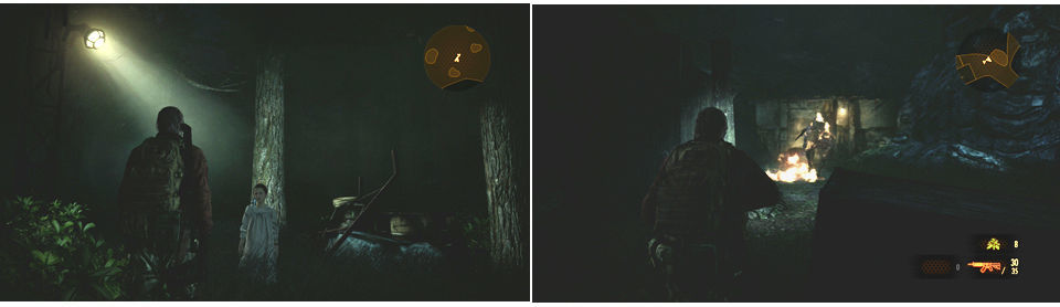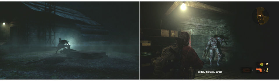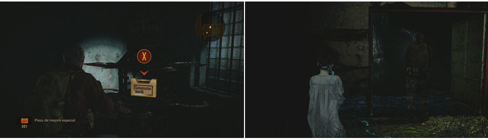 Al avanzar por la puerta tras saltar un mueble, nos enseñan las habilidades de Natalia, "Intuición", puede localizar objetos y enemigos con ella, si nos agachamos amplia su radio, bien con Natalia detectamos un enemigo que esta de espaldas y lo eliminamos con Barry por la espalda, cuidado que hay un par más.