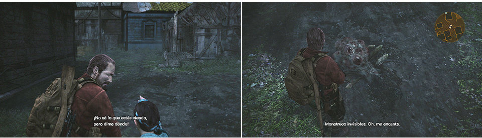 Metiéndonos por el agujero de la casa azul donde estaba el símbolo de la torre 1, hay varios items.Cogemos todo y salimos, solo podemos avanzar por un sitio, salta una secuencia donde Natalia vuelve a advertirnos de que hay algo, un nuevo tipo de enemigo "Glasp" insectos invisibles que solo puede localizar Natalia, muy similar a como localiza las larvas, cuando le localicemos cambiamos a Barry y lo abatimos, mucho cuidado que si nos acercamos y nos coge nos mata directamente.