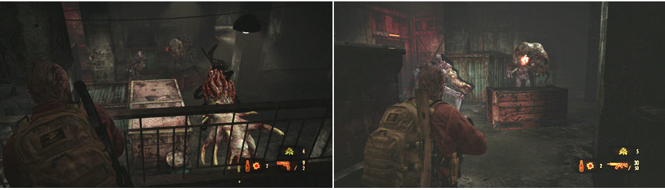 ***Si no hubiéramos matado a Pedro con Claire y por lo tanto no habríamos cogido el Taladro, al entrar a la zona de las escaleras iríamos por abajo, donde encontramos el mapa y nos enfrentamos a varios Revenants, llegando al almacén del Slinger por abajo en vez de por arriba.