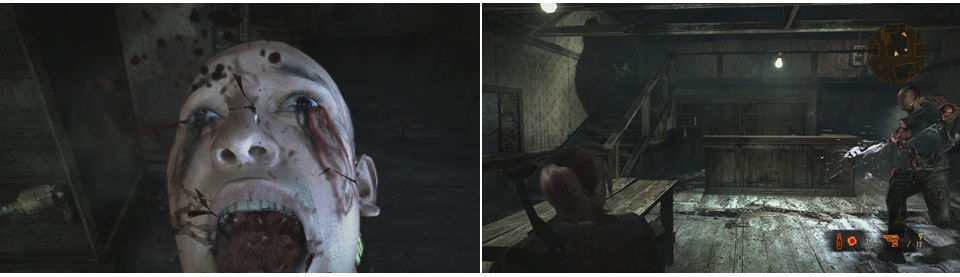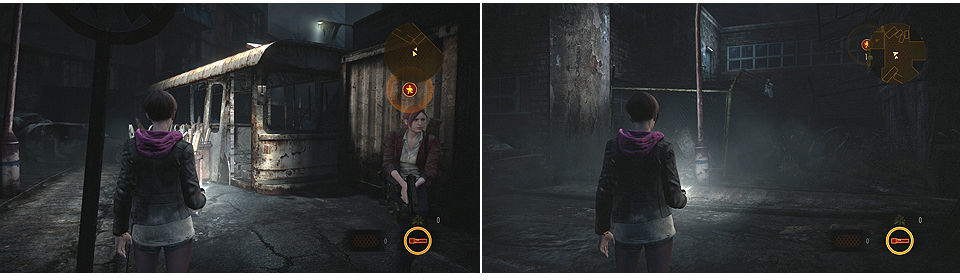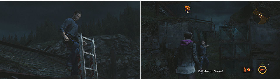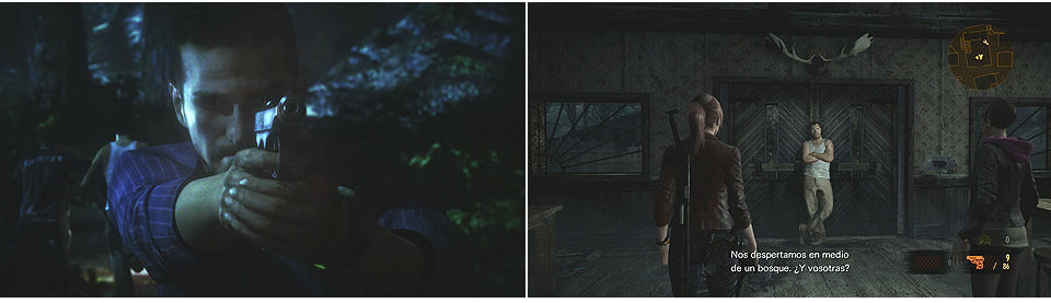 Según entramos al comedor a la izquierda antes de bajar a donde esta la Escopeta.Una vez tengamos todo atravesamos la reja para continuar, salimos a un parque, cuidado con los enemigos que hay patrullando la zona, podemos matarles silenciosamente, pero ojo a los Orthrus que hay por el suelo, según pasemos a su lado se levantan, al fondo hay un autobús, hay que mover las cajas que bloquean las entrada para entrar y llegar al otro lado de la calle donde vemos a Natalia entrando en un edificio, la seguimos.