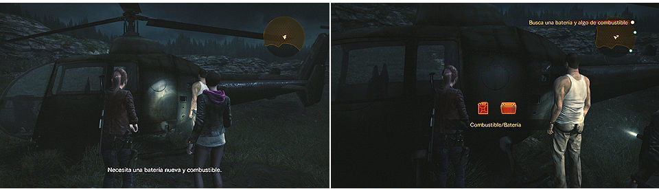 Por la parte trasera de la cabina del helicóptero encontramos la segunda A la derecha según entramos hacia el helicóptero hay una caseta, dentro encontramos la tercera.Tras recoger todo, volvemos al pueblo, cuidado que ya hay enemigos en la zona, por la parte izquierda trasera del Wossek según salimos de él, podemos subir hasta otra casa azul, la zona de las escaleras rotas aupamos a Moira para que entre por el tejado y desbloquee la puerta, dentro encontramos la Batería para el Helicóptero y otra de las cajas militares de Moira.