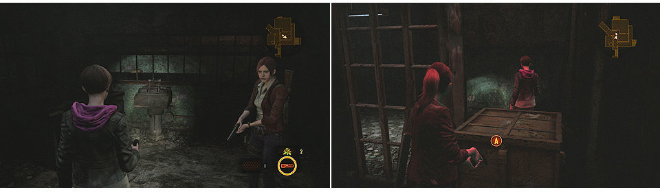 Antes de saltar a donde esta Natalia miramos abajo a la izquierda desde el agujero en la paredTras saltar encontraremos a Natalia y Moira hará que venga con nosotros, atravesamos una habitación con un banco para equipar mejoras en las armas.