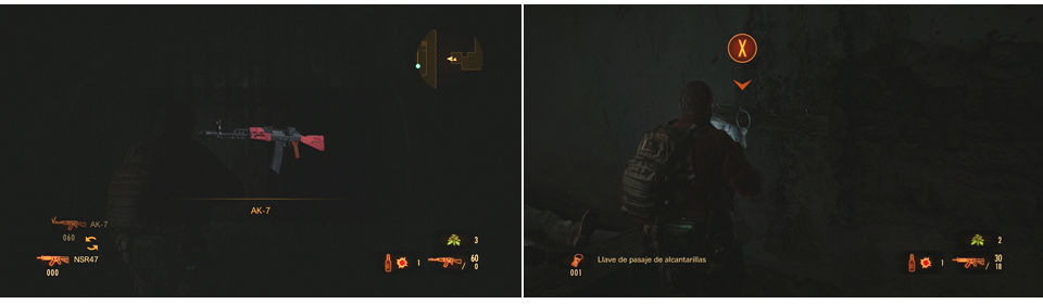 Sobre los 2 tubos que hay en el pasillo entre la catarata donde estaba el dibujo y la zona elevada para coger el medallón la jaula y demás, no esta por debajo esta dentro, hay que tirar el ladrillo desde la zona elevada de enfrente.Un poco más adelante donde teníamos la catarata con el Dibujo de Kafka 5, si abrimos esta válvula con Claire antes podremos recoger un nuevo arma, el Fúsil AK-47, avanzamos hasta llegar al refugio del anciano que nos abrió la puerta, cuidado con el Glasp que hay justo antes de llegar, el viejo ahora esta muerto y podemos entrar en su refugio a coger todos los items y la Llave de las alcantarillas para salir, lo cogemos todo y continuamos pasando a una nueva zona tras cruzar la reja.