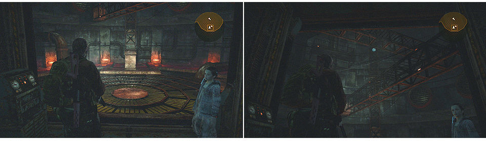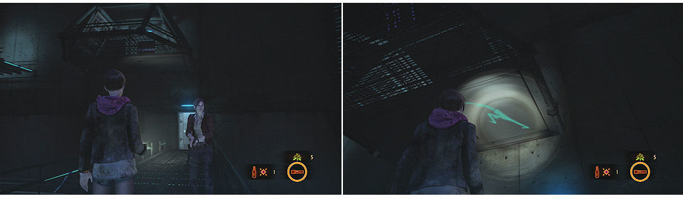 Con el lado derecho abierto por donde pasaba el agua al fondo hacia la puerta subimos las escaleras y lo vemos arriba en una tubería (tenemos que llevar un ladrillo desde abajo).Larva de Insecto 2