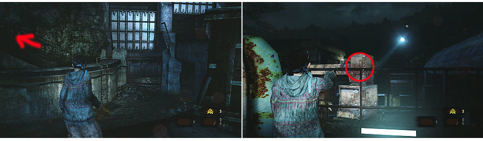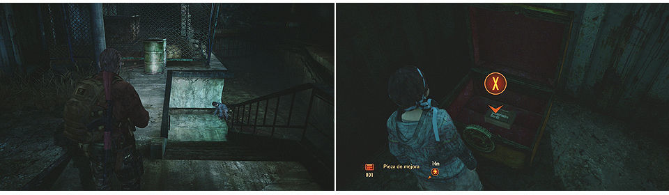 Avanzando por el fondo del canal subimos hasta llegar a una caseta, dentro hay un agujero por el que se puede meter Natalia y llegar a una caja Trucada, cuidado que dentro hay un enemigo, para eliminarle, dentro de la sala de la caja ha una puerta cerrada por el otro lado, desde fuera con Barry la desbloqueamos rompiendo el candado para que salga el Rotten y matarlo, así podemos abrir la caja tranquilamente.Caja Trucada 2 (Kit Mejora)