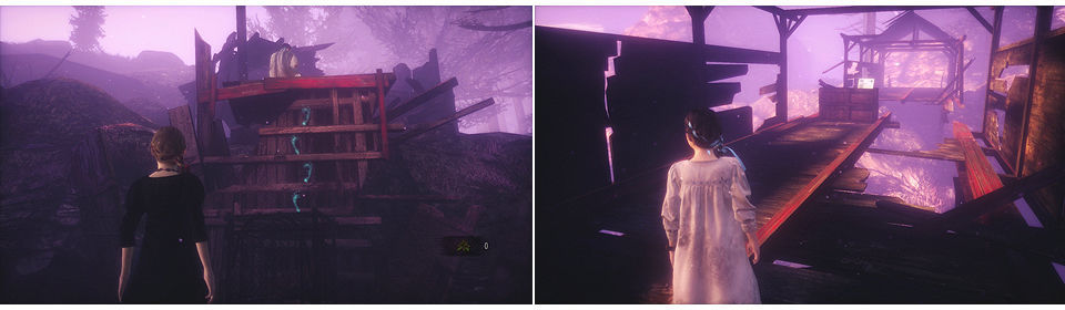 El bosque del capítulo 2 de Barry, aquí aparte de enemigos Revenants, también hay Glasp, Natalia no puede verlos pero Natalia Sombría si, también tendremos que mover alguna jaula para subir por los sitios en los que veamos huellas que han escalado.