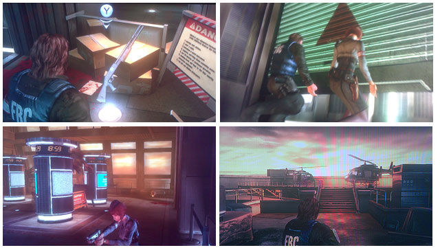 Salimos en la planta 3, tras avanzar por unos pasillos llegamos hasta una zona con despachos, al fondo podemos saltar un cartel de "Caution" y coger varios Items, entramos por la puerta de la izquierda (sobre el cristal pone M3-1) salimos al pasillo contiguo y hacia la izquierda al fondo tenemos una habitación con un archivo para leer, munición de escopeta y granadas, hacia la derecha cogemos la Escopeta M3, avanzado por este pasillo llegamos a otra zona de oficinas donde saltando otro cartel de "Caution" llegamos hasta una puerta metálica que nos lleva a las escaleras, tenemos que subir hasta la planta 6, entramos a unas oficinas donde nos atacan varios Hunters, por la puerta llegamos a un pasillo donde necesitamos la ayuda de Jessica para poder levantar la puerta y continuar, llegamos a un Hall con un ascensor que al pulsarlo tardará un rato en llegar y nos atacarán Hunters constantemente hasta que venga, tenemos varios items por la sala, en cuanto el ascensor llegue lo mejor es meterse dentro rápidamente, pues comienzan a venir Hunters en mayor número, al subir veremos unas escaleras que nos llevan hasta el Helipuerto, con una secuencia de la destrucción de Terragrigia concluye la primera parte.