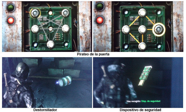 Según entramos a la derecha, tenemos piezas de personalización por la puerta de enfrente encontramos un mapa a su izquierda, continuamos a una sala con unas escaleras al subir, vemos una puerta con un extraño mecanismo, piezas ilegales a la izquierda (que no podemos coger) y unas escaleras a la derecha hacia abajo, al bajar las escaleras de frente tenemos una puerta que conduce a una sala con tanques donde nos ataca un Ooze y encontramos un nuevo arma, ametralladora AUG y piezas de personalización, salimos y vamos hasta el fondo cuidado que salen varios enemigos Ghiozzo y Sea Creeper, subimos las escaleras de la izquierda, a la izquierda entramos al otro lado de la sala de máquinas parte superior y por la derecha llegamos hasta una puerta que está cerrada.