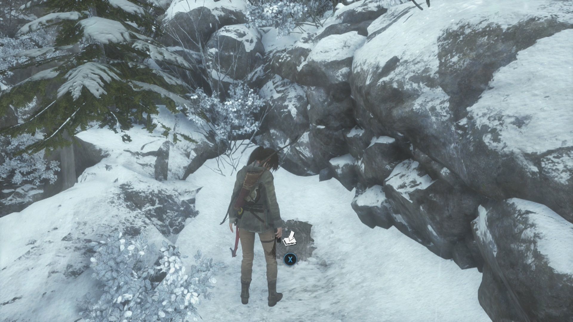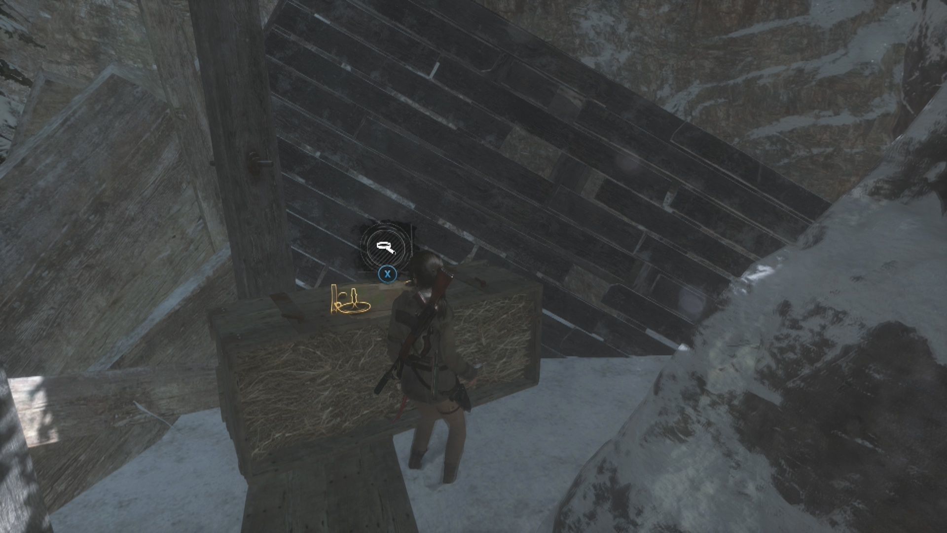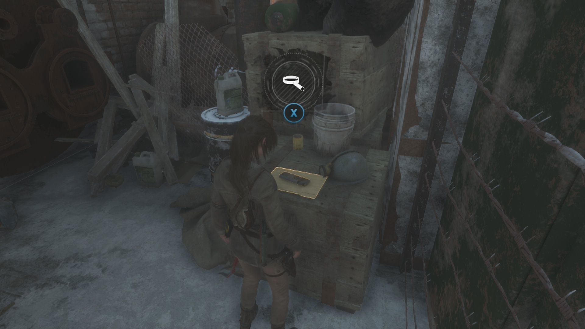 Sigue de nuevo el camino principal hasta encontrarte con tres enemigos más y acaba con ellos. Un poco más adelante verás otra patrulla de tres enemigos, cuando acabes con ellos rodea el quita nieves por el lado izquierdo para encontrar un Mapa de archivista y sube por la pared de madera de la derecha para llegar a otra zona. Aquí verás un mayor número de enemigos y cuando acabes con ellos debes ir por el camino que va hacia la izquierda por el puente derruido para encontrar el Alijo de supervivencia 2 en un árbol de la derecha antes de llegar a la verja metálica.
