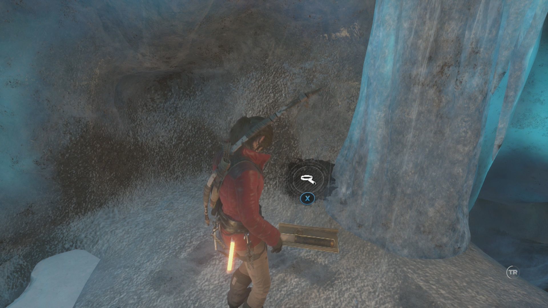 Nada más entrar en la caverna sigue hacia delante para caer por una rampa helada. Cuando llegues al suelo date la vuelva y sube por la pared de hielo para encontrar el Documento 1.