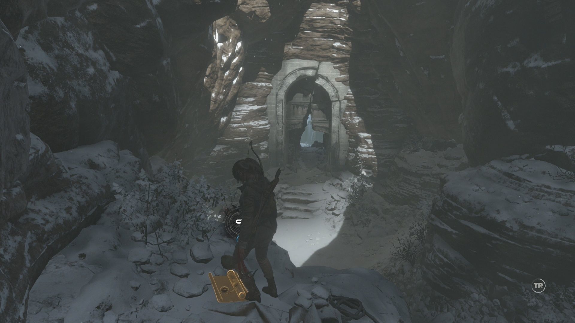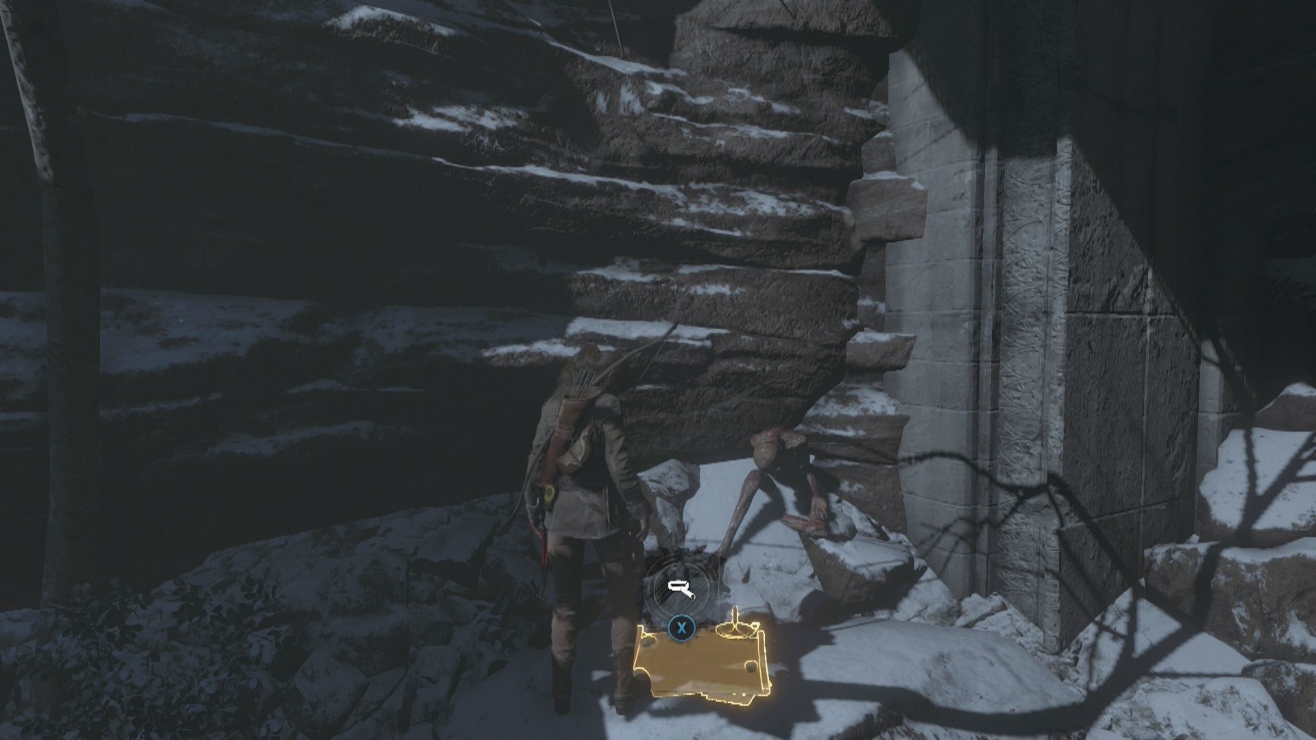 Avanza por el camino hasta llegar a un cruce y ve hacia la izquierda para encontrar un Mapa de archivista. Vuelve al cruce y sube a la roca de la izquierda para encontrar el Documento 1 junto a una caja.