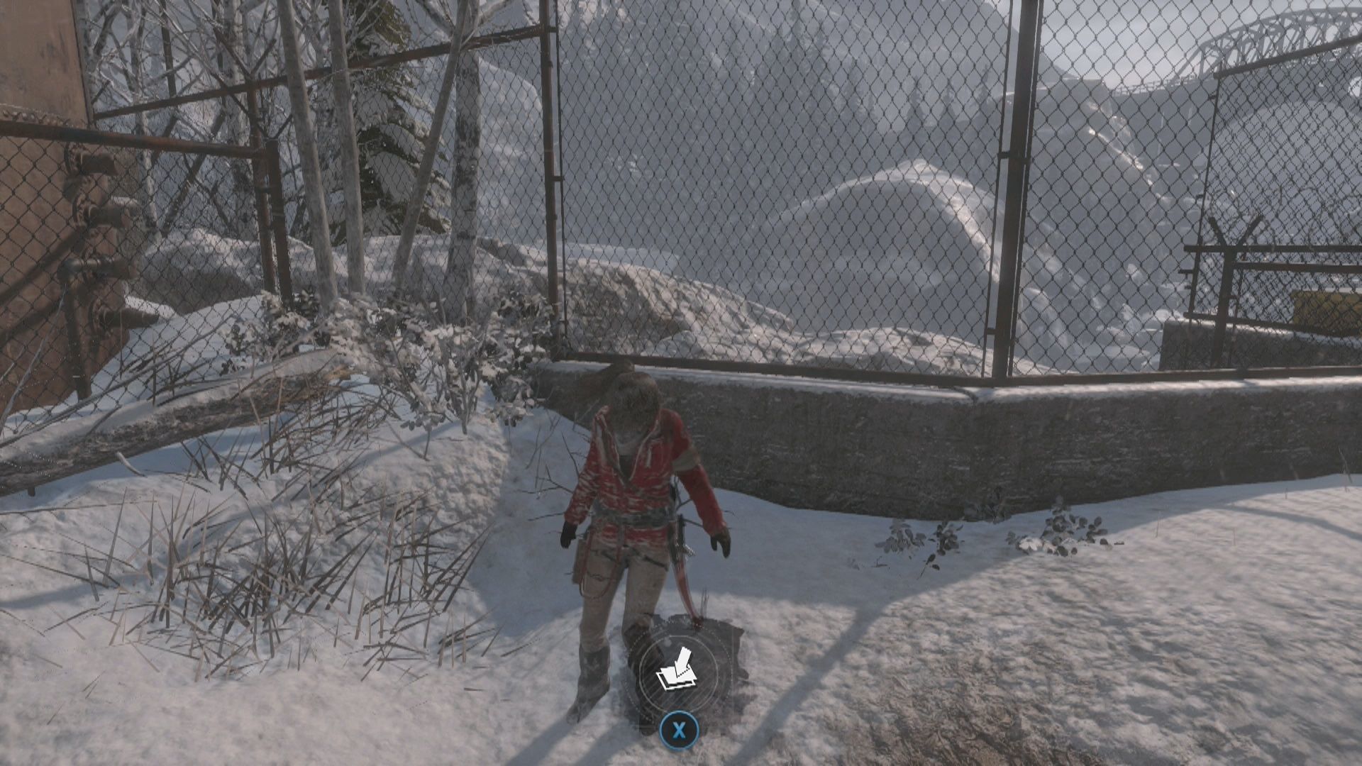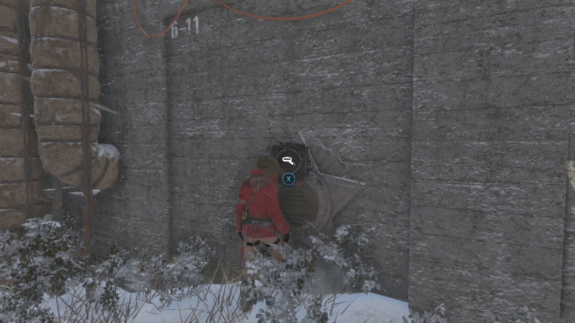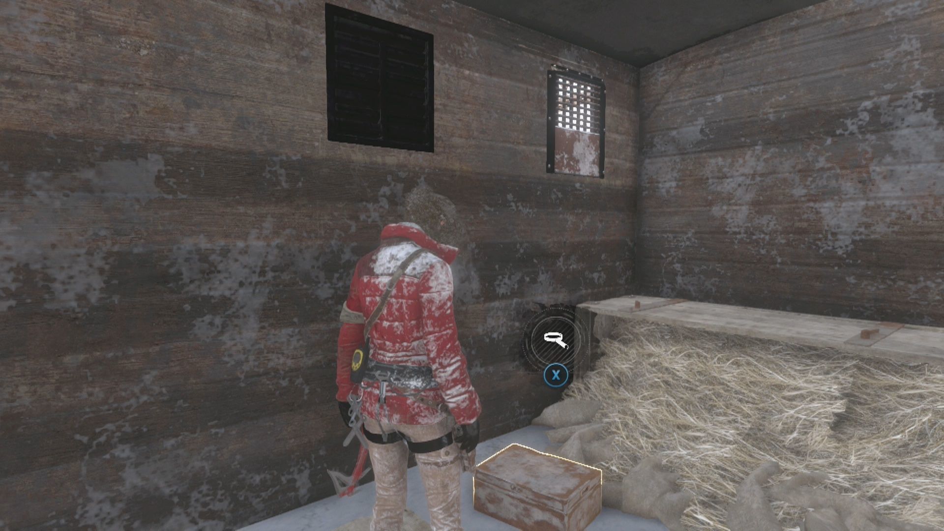 A la derecha del campamento encontrarás el Alijo de monedas 1 junto a una verja. En uno de los laterales de la cabaña junto al campamento verás el Mural 7, abre la puerta de la cabaña usando el piolet para desbloquear un almacén de suministros y sal por el otro extremo para encontrar el Documento 10 encima de una caja de suministros. Sube por la escalera de mano que tienes a tu izquierda y usa la tirolina para llegar a la zona de aterrizaje del avión.