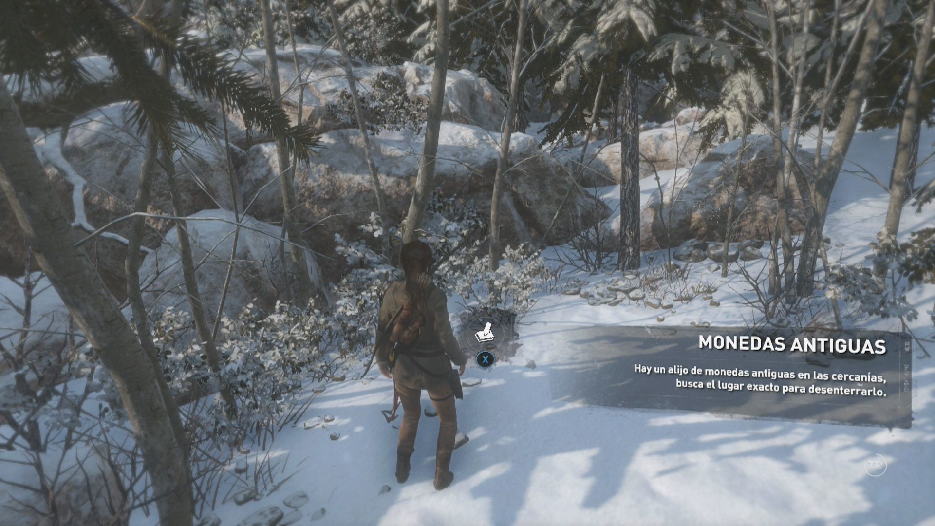 En el Campamento forestal rodea la casa de la izquierda y usa el arco con cuerda para quitar unas tablas de la parte inferior, bajo la casa encontrarás el Baúl 6. Ve hacia el norte y cruza el puente derruido, al cruzar mira hacia la izquierda para encontrar el Alijo de monedas 2.