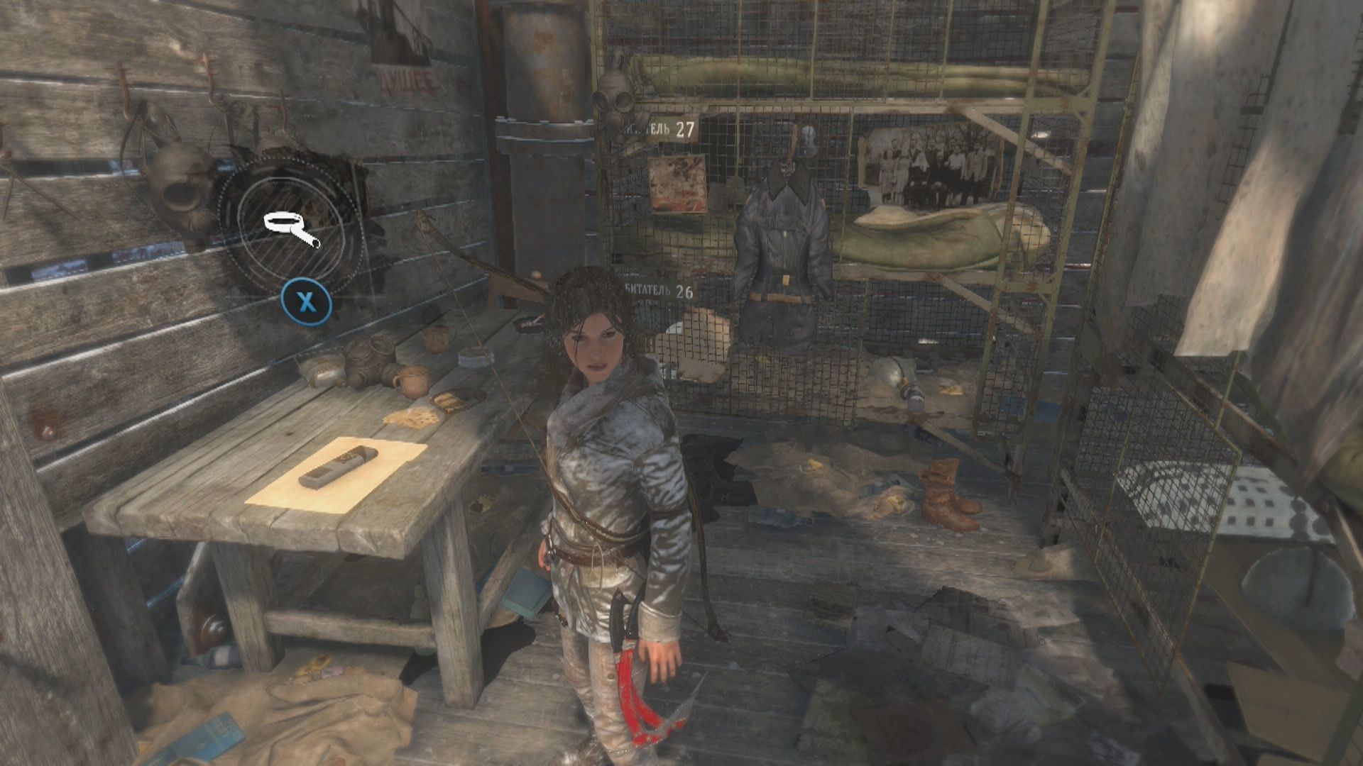 Ve al punto de la misión principal. Al entrar en la zona desbloquearás un nuevo campamento y a la izquierda verás un Monolito y el Mural 9. Usa el arco con cuerda para quitar las maderas que bloquean la entrada y sube las escaleras del primer edificio de la izquierda, abre la puerta usando el piolet y mira en el escritorio de la derecha para encontrar la Reliquia 12. Sal de la casa y ve hasta el fondo para entrar en tora casa, encima de una mesa verás el Documento 19. En la parte trasera de la casa encontrarás el Alijo de supervivencia 14, justo a la derecha del final del vagón de un tren.