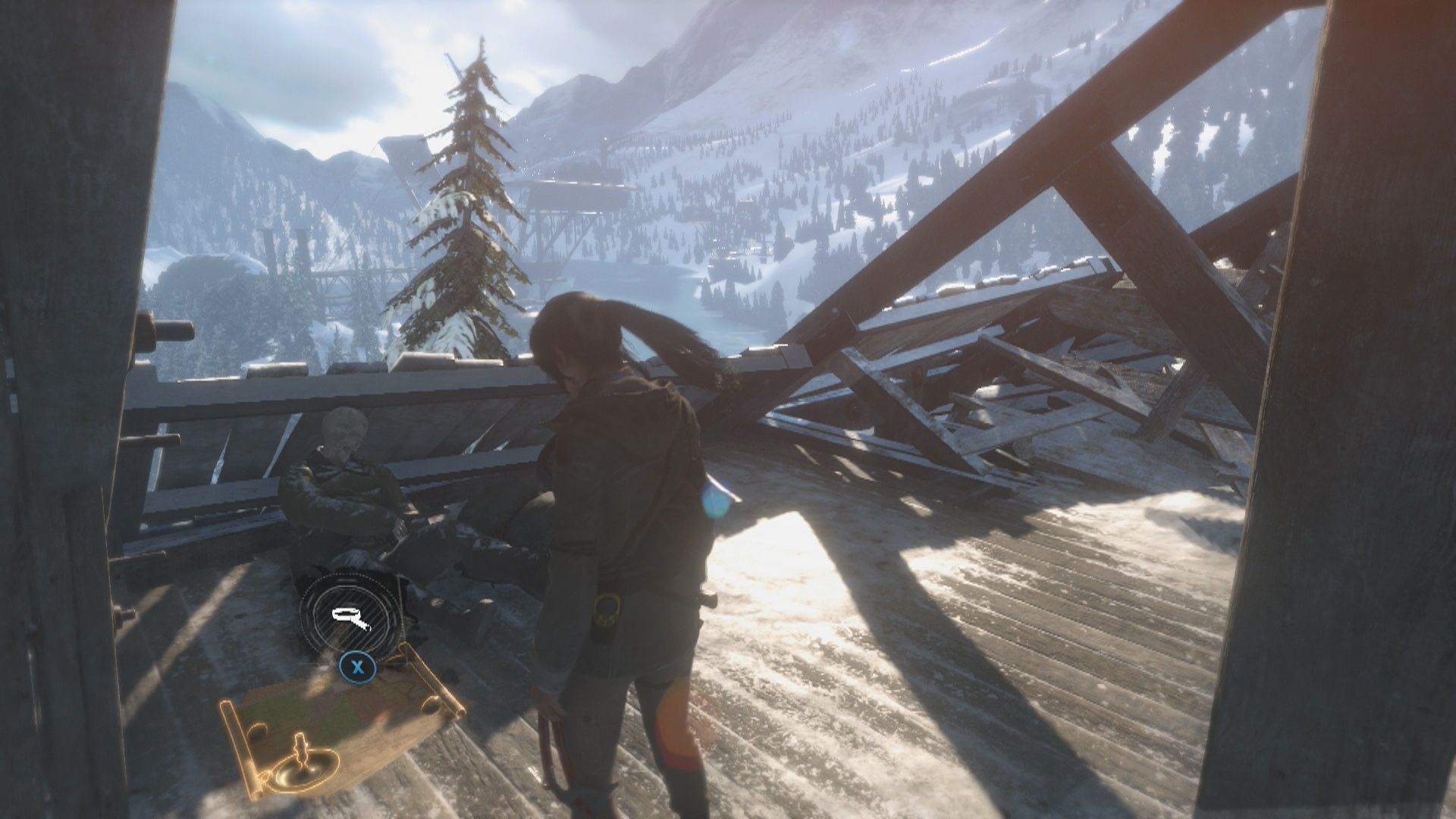 Según llegaste a la zona de la tumba después de la escalada verás una mochila de explorador que debes examinar para conseguir una Cartera de explorador con la localización de algunos coleccionables. Justo a la derecha verás en el suelo el Alijo de supervivencia 11 y si bajas por las escaleras verás una caja que contiene la Reliquia 10. Dentro de la tumba ve hacia la primera mesa de la izquierda para encontrar un Mapa de archivista, en la segunda mesa encontrarás el Documento 17 y a la izquierda de la puerta del fondo verás el Alijo de supervivencia 12. En la zona de la segunda rueda mira hacia la derecha para ver el Documento 18 en un saliente. Sal de la tumba y usa el arco con cuerda para crear una tirolina al otro lado de la montaña, salta por la pared y al llegar al siguiente punto donde debes crear una tirolina mira a la derecha para ver el Alijo de supervivencia 13. Cuando uses la tirolina date la vuelta para ver la Reliquia 11 en el borde de la montaña. Sigue este camino hasta llegar al campamento de esta zona y úsalo para ir al campamento forestal.