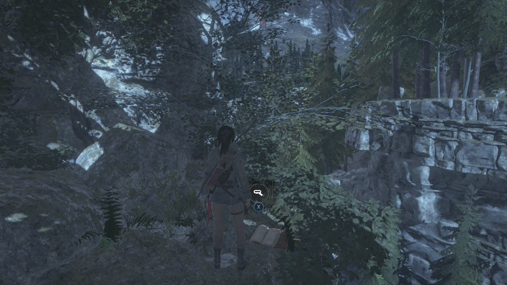 Cuando acabe la siguiente cinemática usa el arco con flecha para cruzar al otro lado. Antes de usar la nueva herramienta de piolet con cuerda déjate caer y mira a la derecha para encontrar una mochila de explorador que debes examinar para conseguir una Cartera de explorador. Vuelve a subir y usa el piolet con cuerda para cruzar, cruza por el tronco y usa de nuevo el piolet con cuerda en la roca de la derecha para avanzar. Nada más subir mira a tu derecha para ver el Documento 9. Desde aquí sigue el camino por la izquierda hasta volver al Valle geotérmico.