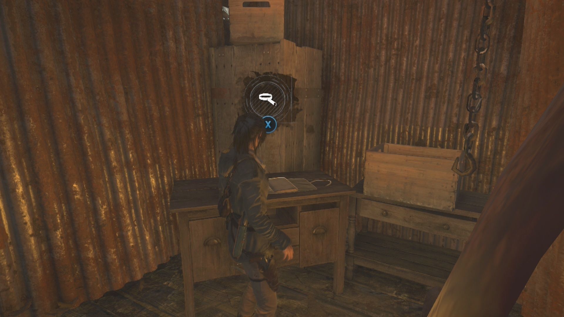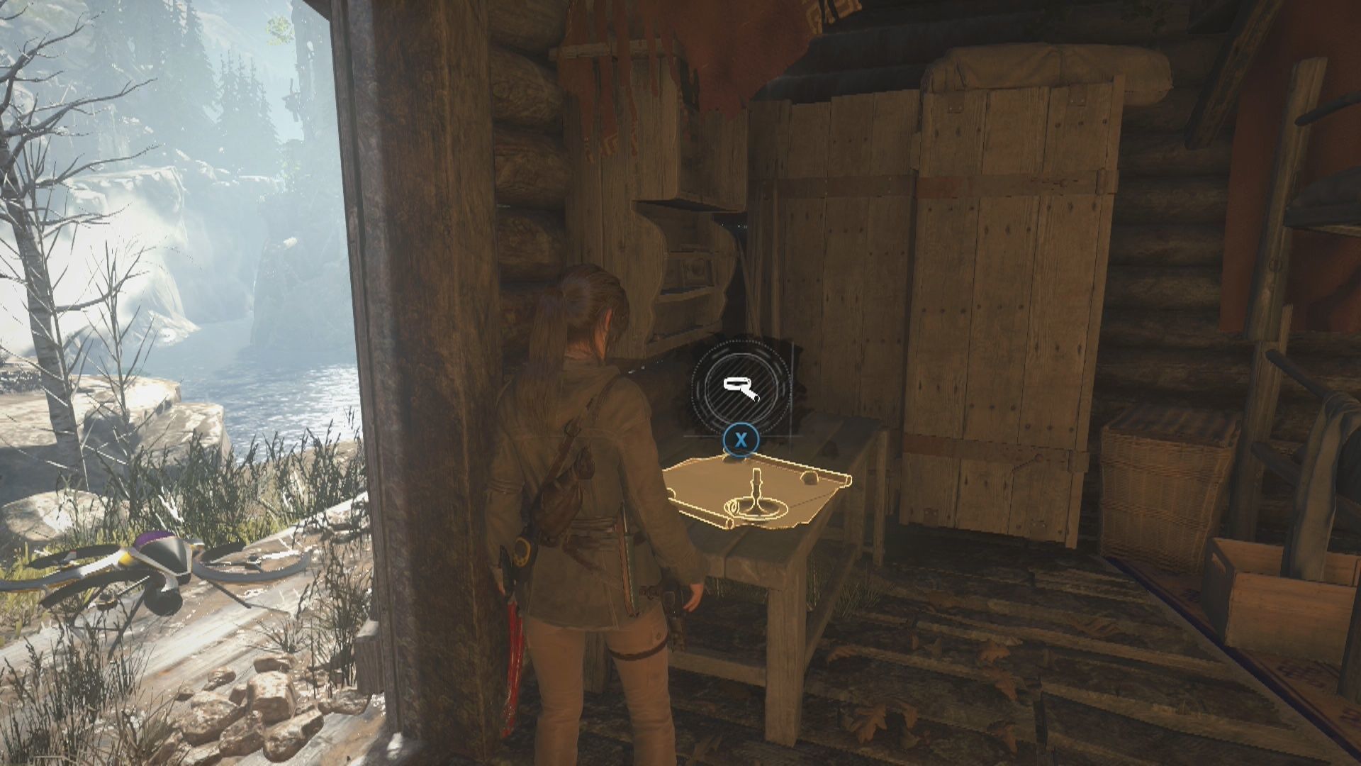 Una vez que tomes el control de Lara de nuevo entra en la cabaña que tienes delante y examina la mesa de la izquierda para encontrar el Documento 12, sigue el camino fuera de la casa que va hacia el sur para encontrar el Baúl 5.