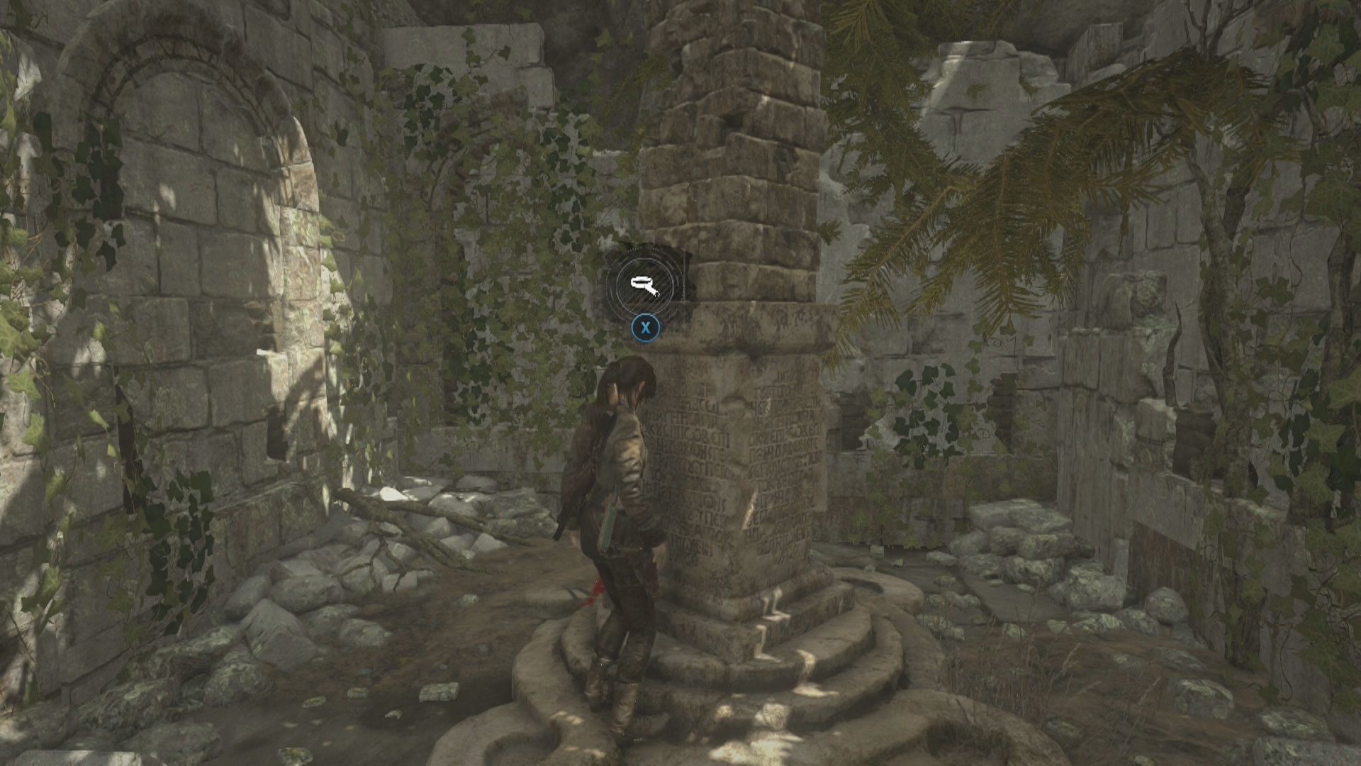 Sigue el camino hacia el sur hasta llegar a un campamento y ve hacia el oeste para encontrar un Monolito que debes examinar para conseguir la localización de tres alijos de monedas. Ve hacia el este desde el campamento y sube por el trozo que está caído para llegar hasta la siguiente tumba de desafío.