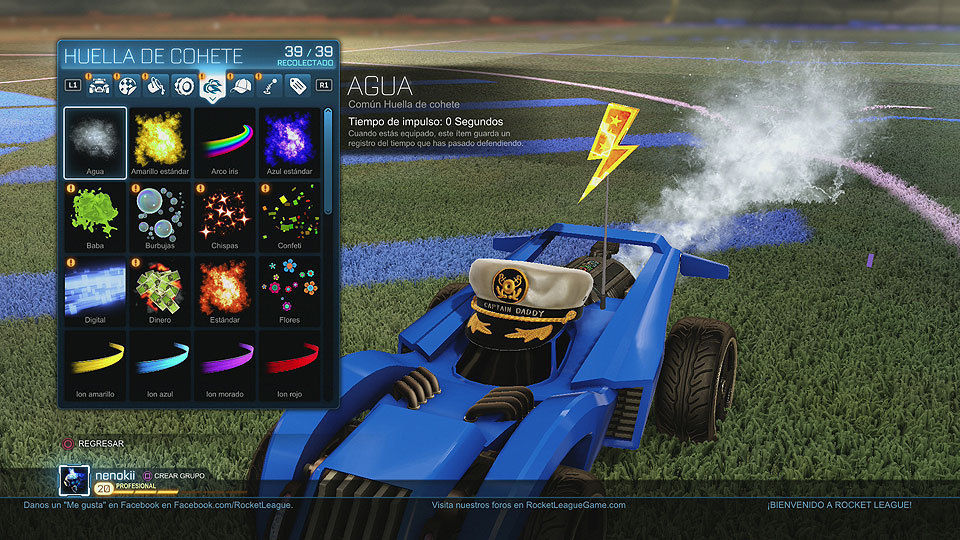 Dentro del apartado garaje podemos personalizar nuestro vehículo y la gran mayoría nos dan información sobre datos que quizás queramos consultar para los Trofeos/Logros, tales como Goles, Distancia recorrida, Tiempo jugado, etc...
