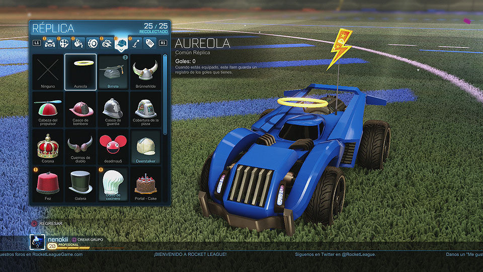 Son gorros que podemos equipar a nuestra carrocería, en total hay 25, cada uno guarda cuantos goles hemos marcado con ellos equipados.