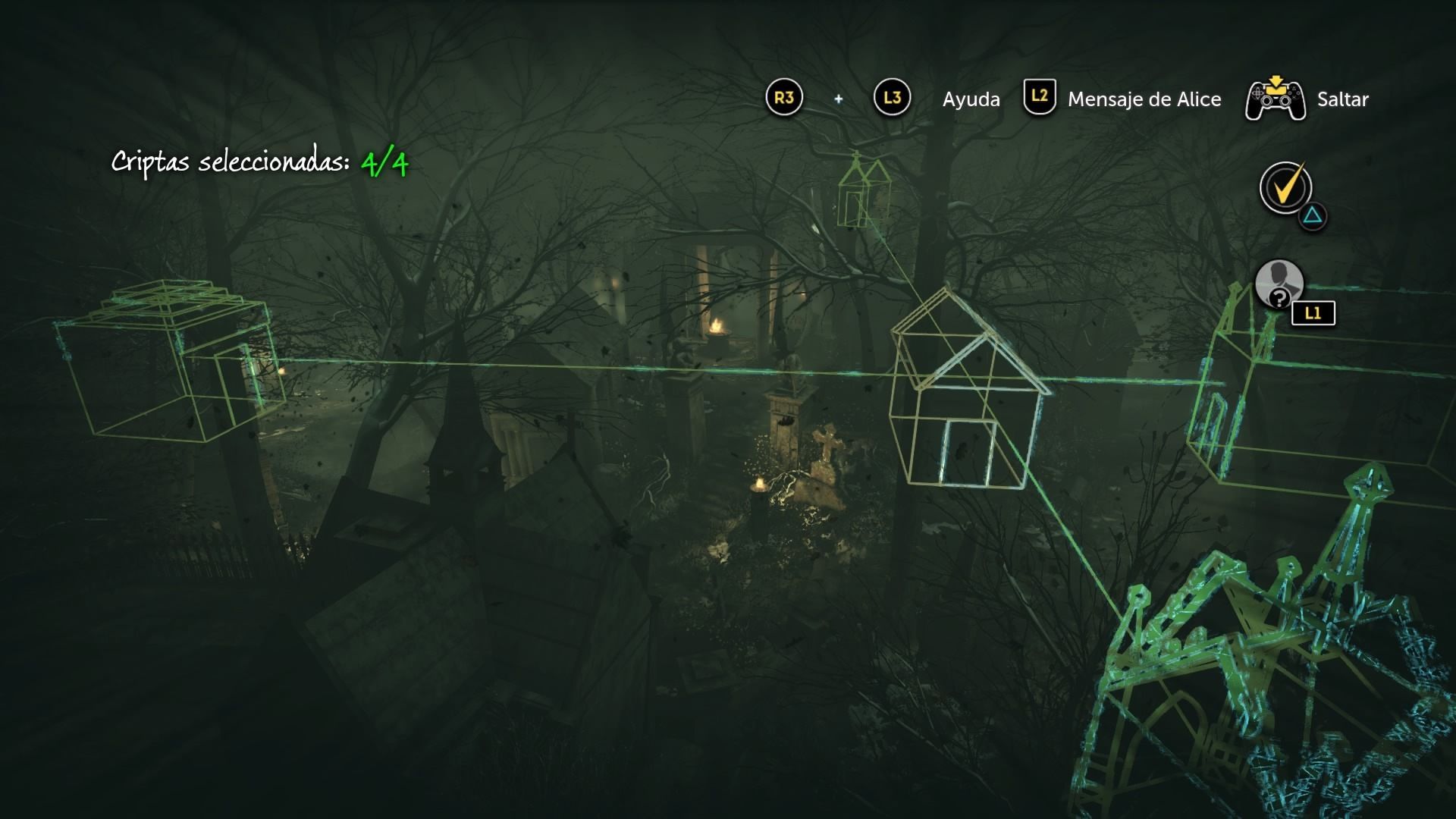 Ahora debes marcar las cuatro criptas que responden a las descripciones del mensaje de Alice. Estas son las de William Shaw, Henry Anthony Evans, William FitzClarence y Archibald Irwin. Confirma la selección y ve a la cripta remarcada en amarillo, que es en la que debes adentrarte.