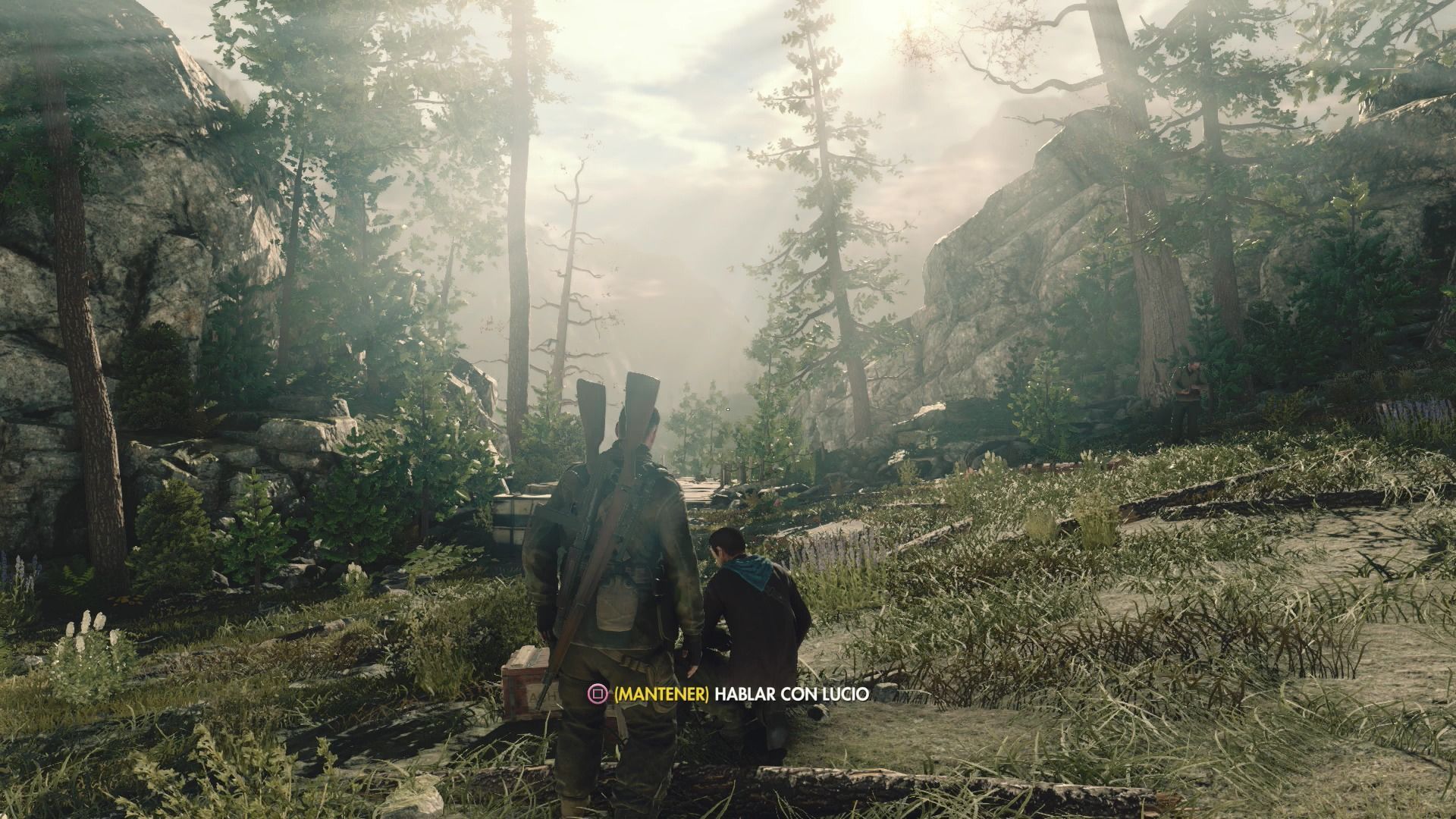 Cuando estés listo ve hacia la madera que ves al fondo y examina la cuerda para iniciar la misión.