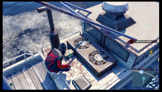 - Tienes que subirte al vagón del metro que va por el paso elevado y usar el agarre de telaraña en la parte donde conectan los vagones.