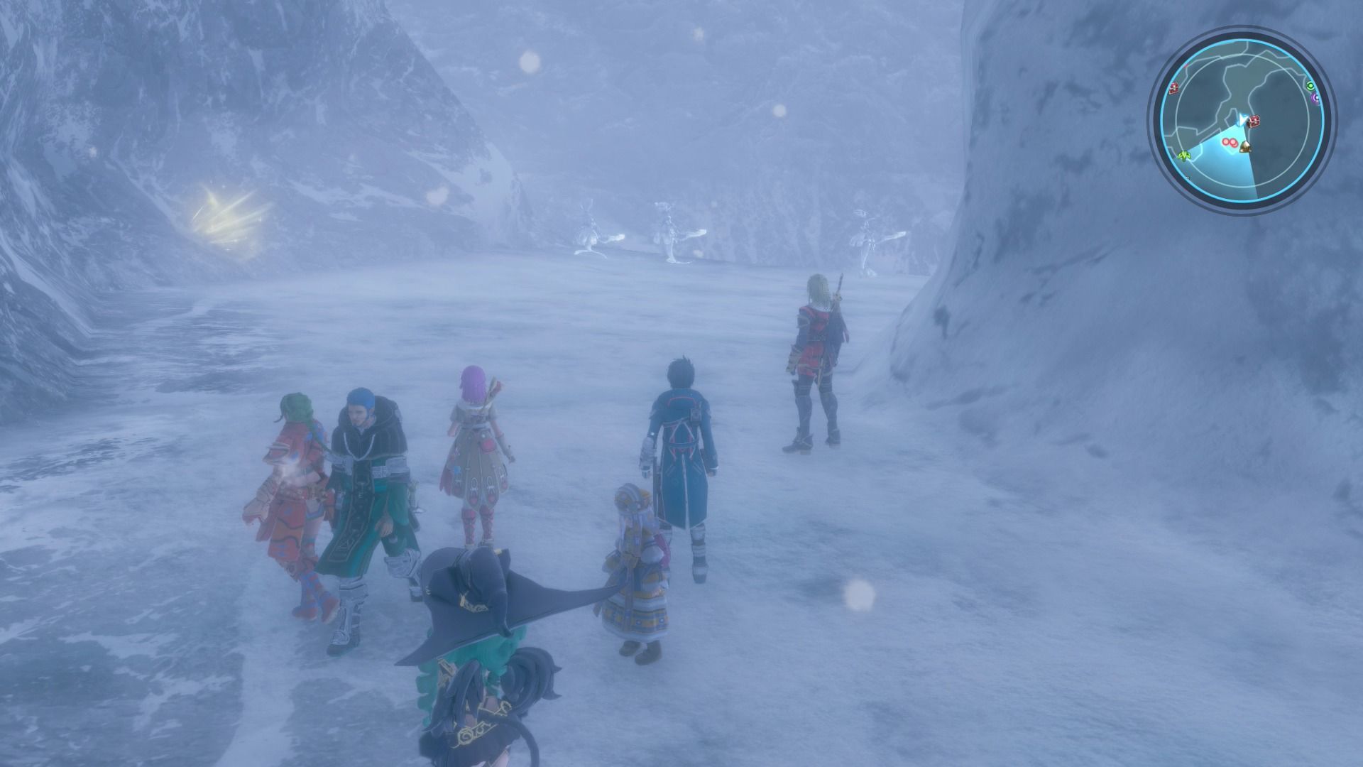Espera a que acabe la conversación con tu grupo y sigue el camino hasta llegar a una cueva en la que tendrás otra conversación, sal de ella para que te siga tu grupo y vuelve a entrar para curarte y guardar la partida antes de avanzar. Más adelante tendrás otra conversación con tu grupo.