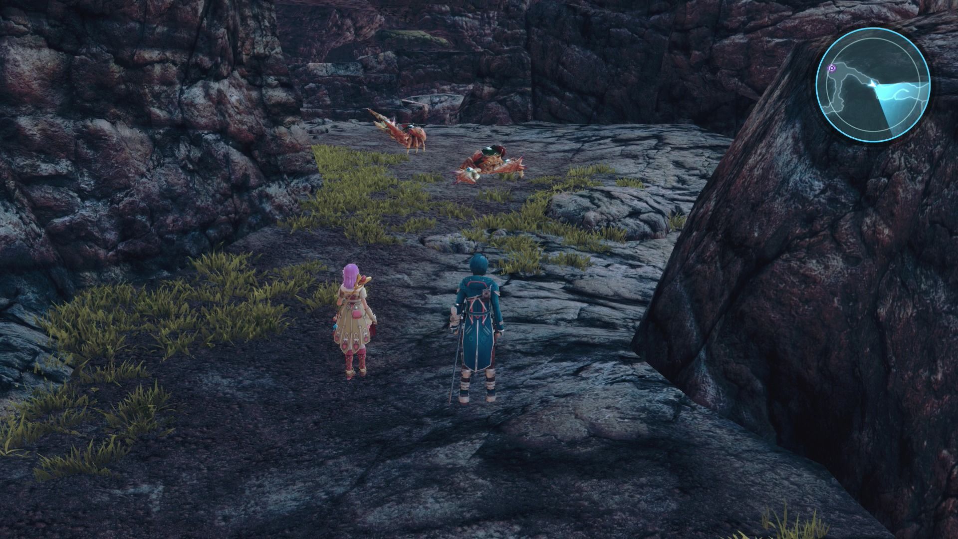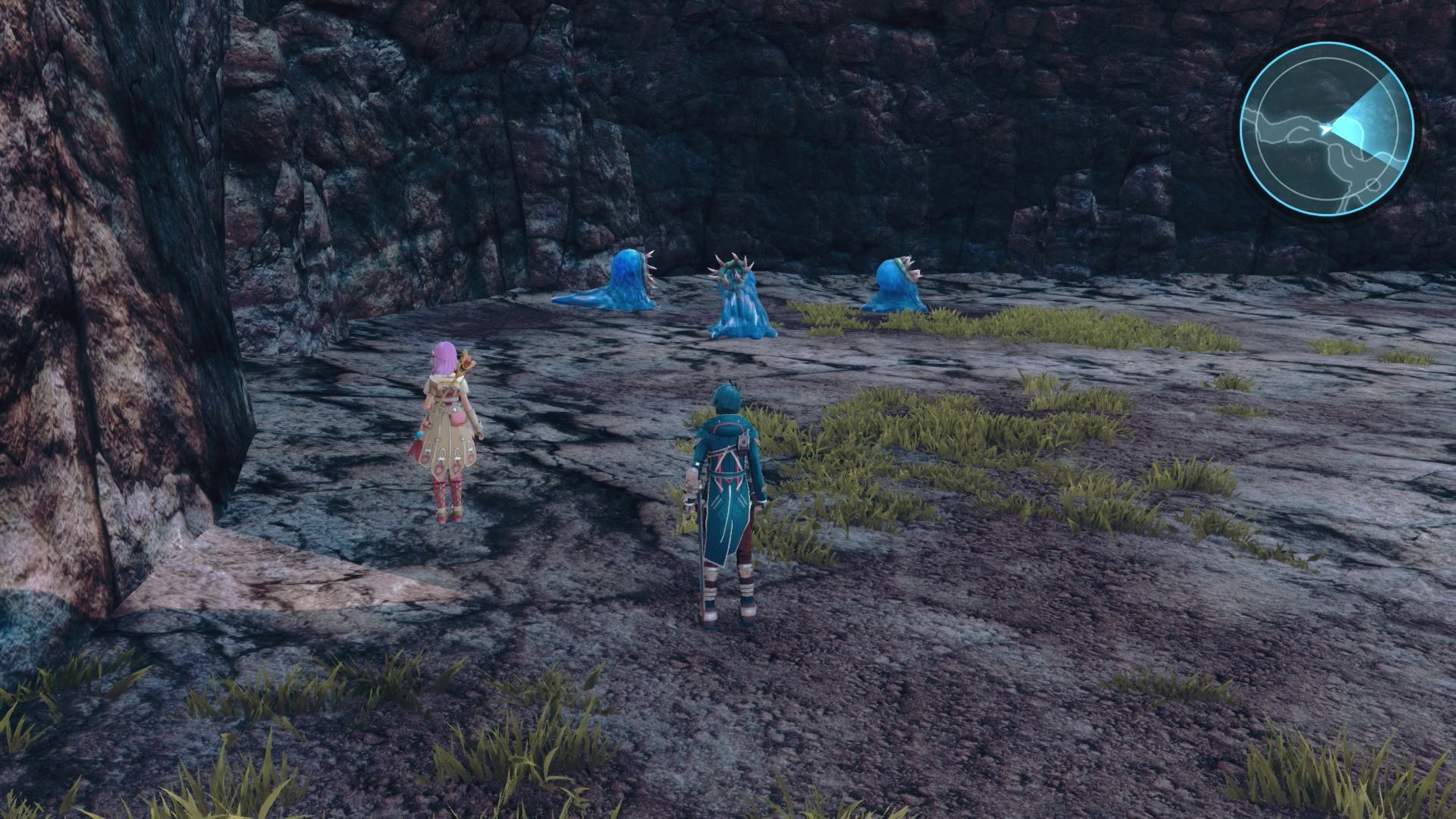 Avanza por la montaña y usa el Punto de guardado que verás a la izquierda. Al bajar la primera rampa ve hacia la derecha para encontrar un cofre que contiene dos Blackberries. Sigue hacia el otro lado de la montaña y acaba con el enemigo Killer Chelae y el enemigo Gerel que verás en el camino. Más adelante verás un camino hacia la derecha que te lleva hasta un cofre que no podrás abrir de momento. Ve hacia la zona de la derecha y cuando acabes con el grupo de enemigos que patrulla esta zona abre el cofre para conseguir 127 Fol.
