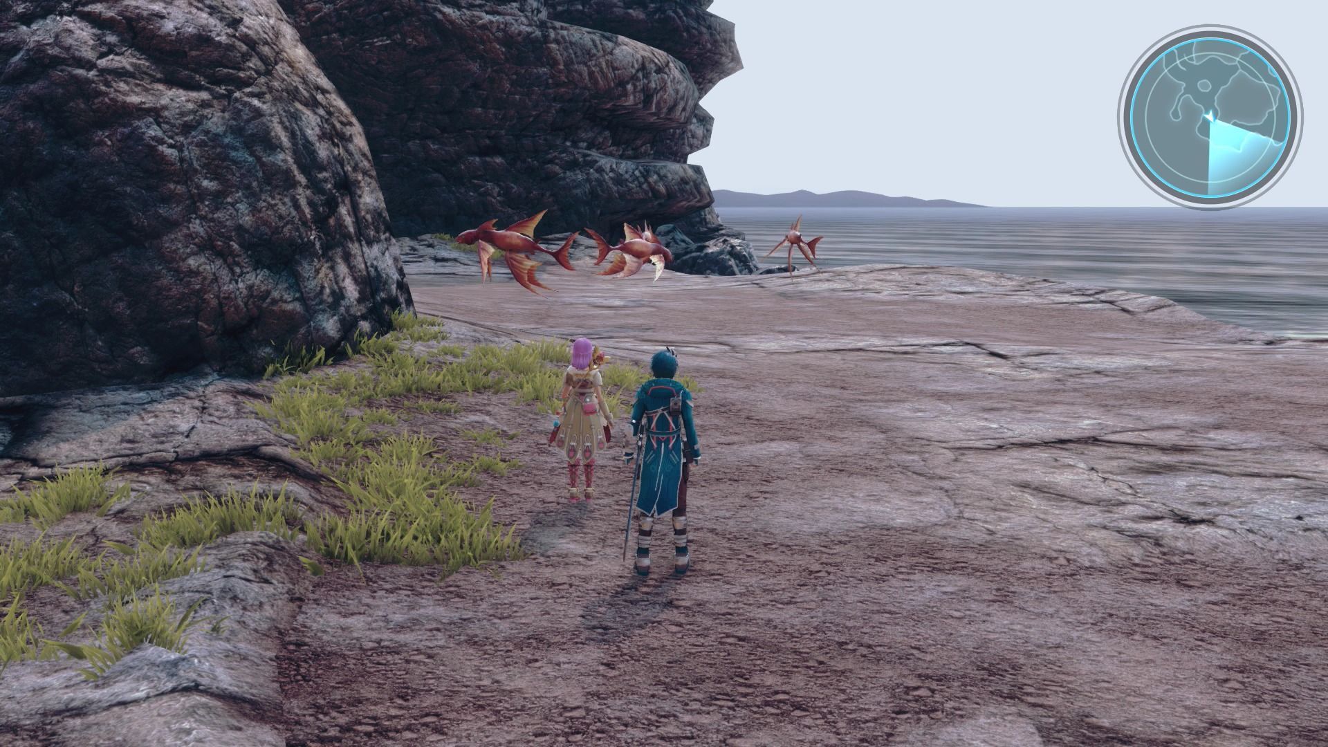 Sigue el camino cruzando el puente y madera y acaba con las Land Turtle que ves al otro lado. En vez de avanzar recto baja por el camino de la derecha, terminarás encontrando un cofre que contiene tres Iron. Vuelve atrás y sigue recto, al bajar la siguiente rampa ve hacia la derecha y abre el cofre junto a la rampa para conseguir tres Blueberries, ve por el camino de la izquierda para llegar a una zona en la que encontrarás un cofre que contiene un Wooden stick. Vuelve a la zona anterior y sigue todo recto para llegar a la Coast of Minoz.