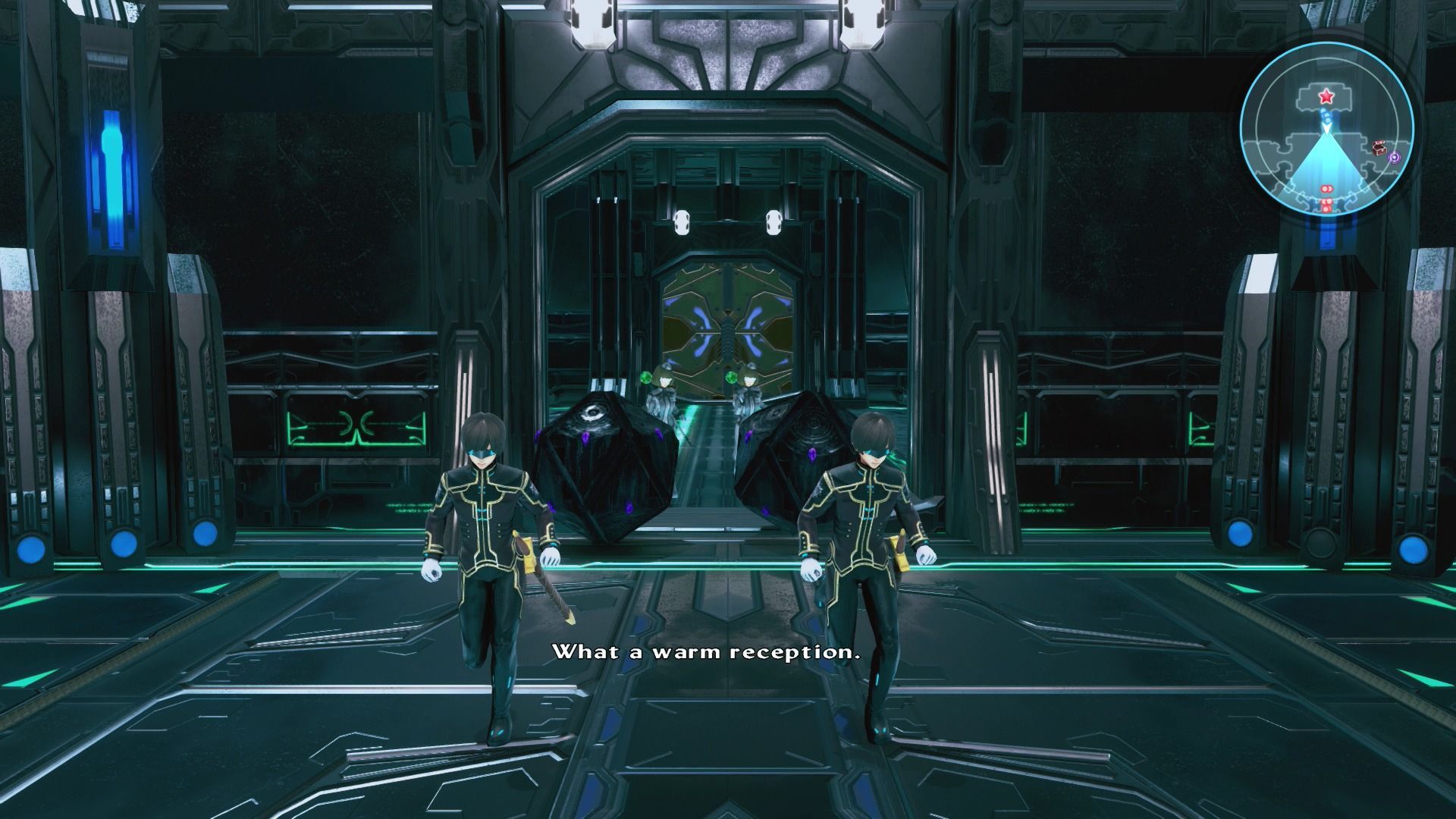 Espera a que Anne comience a revisar la terminal y prepárate para la llegada de algunos enemigos, entre ellos el Pandora's Cube.