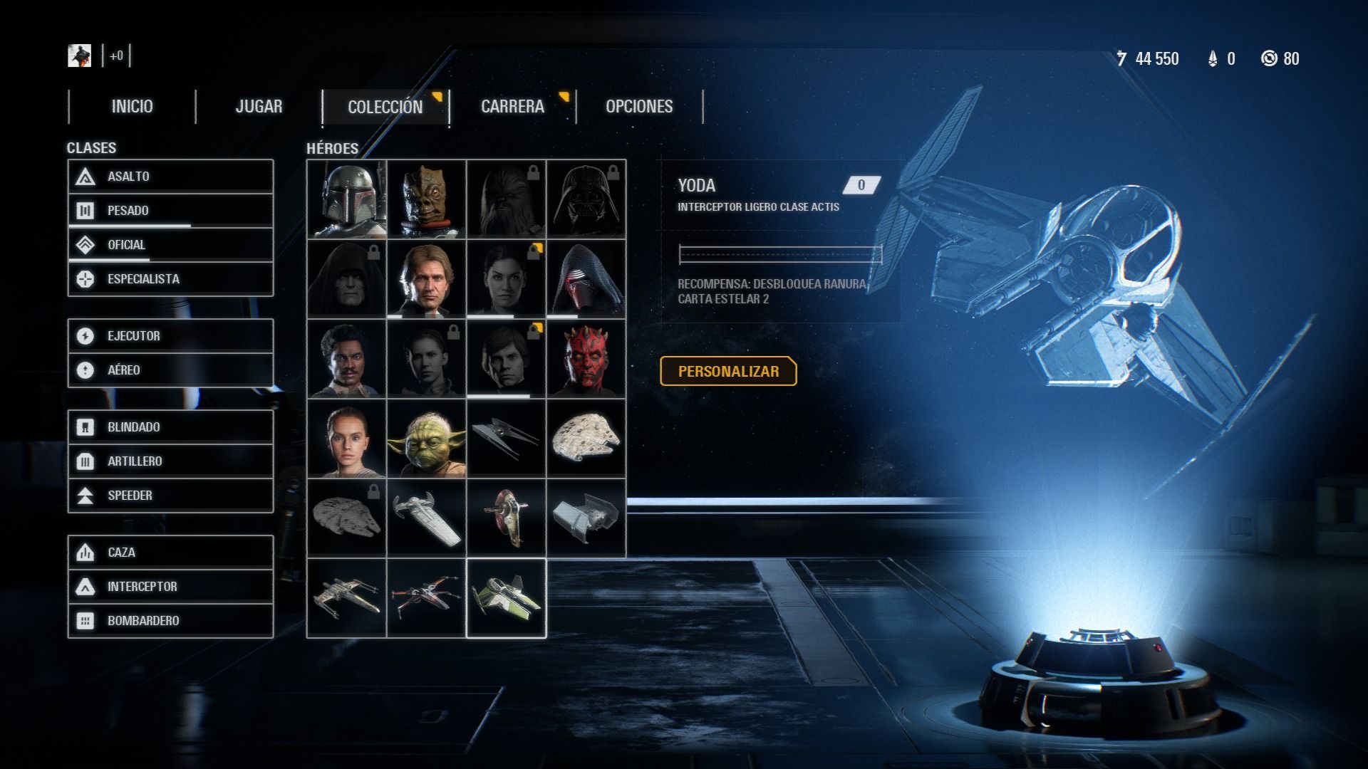 - Piloto de élite: aumenta la velocidad del giro del TIE Avanzado X1.